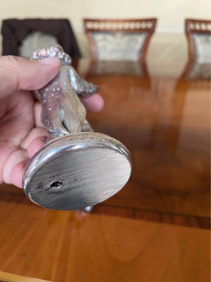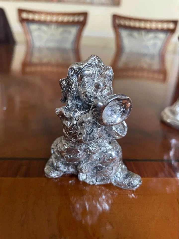 Collection of 3 metal silver plated sculptures of clowns musicians 3” and 4” tall, price for all three
