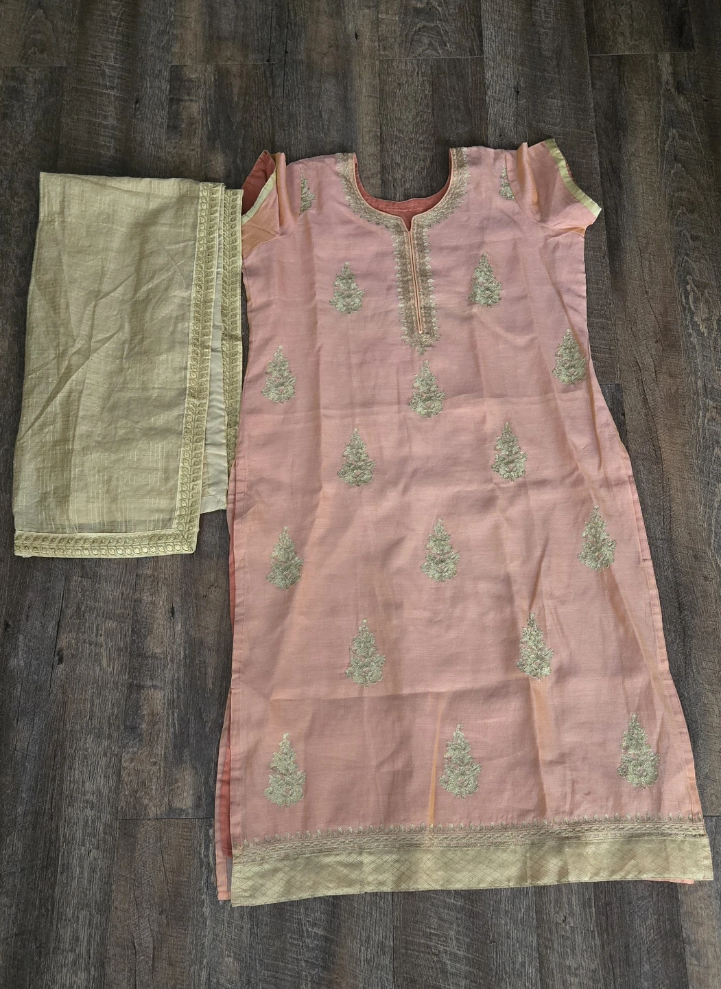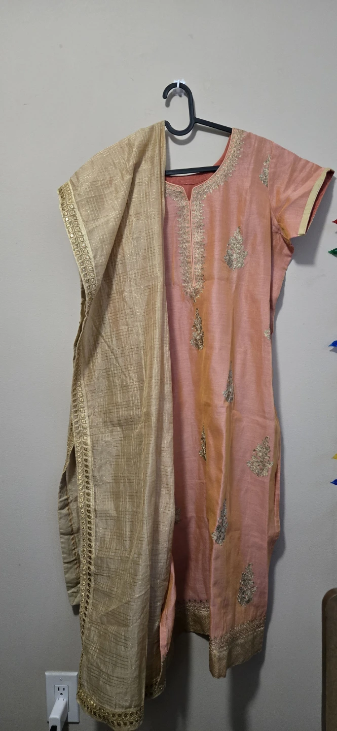 Peach and Gold Salwar Suit top with dupatta -XL