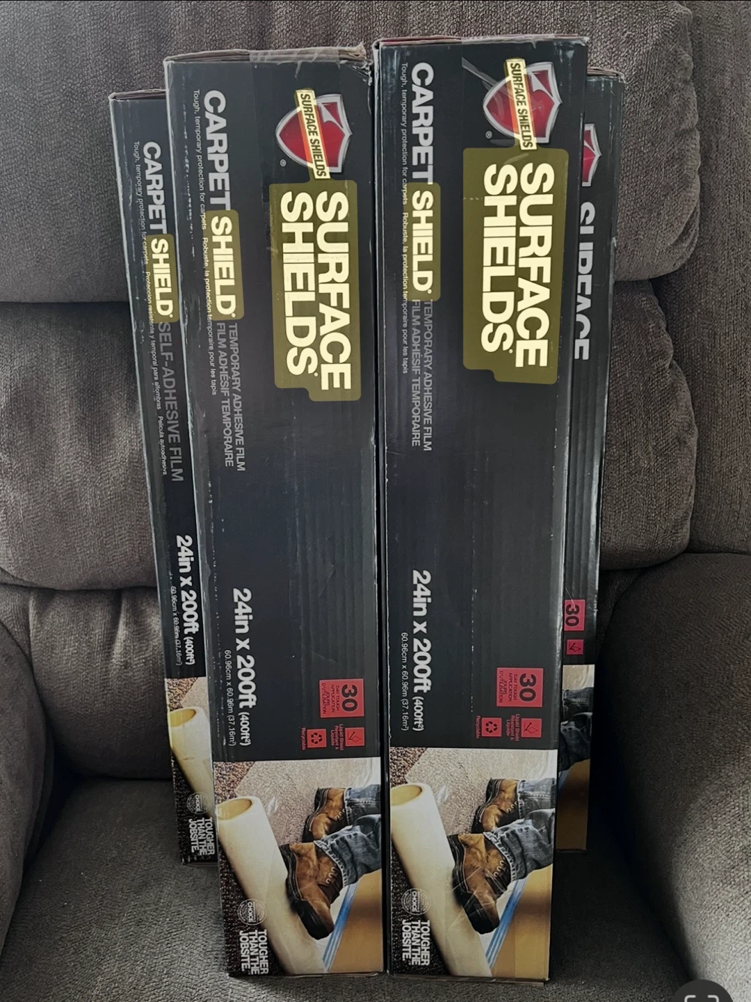 Selling 5 rolls of Surface Shields Carpet Shield! These are tough, temporary adhesive films designed for carpet protection. Each roll measures 24 inches by 200 feet (400 sq ft). Great for keeping your carpets clean during projects!