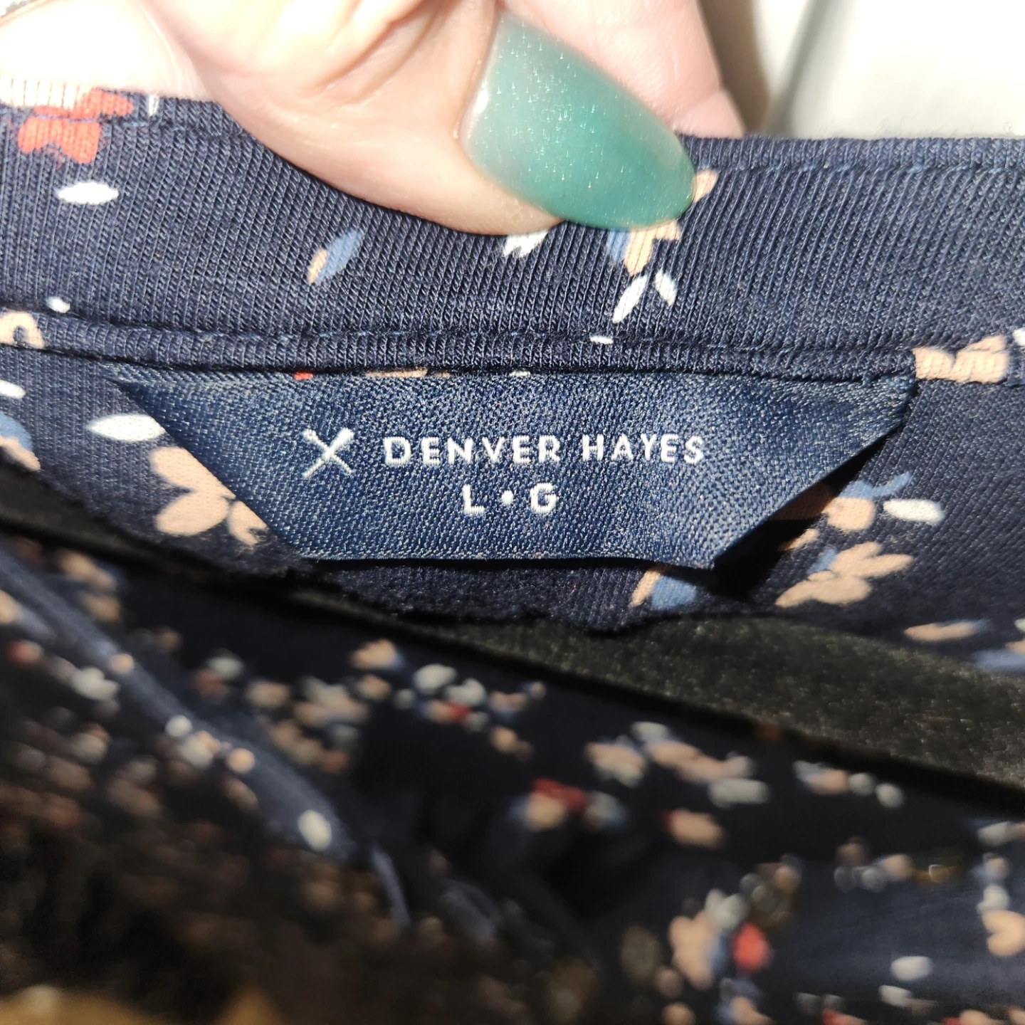 Selling a cute Denver Hayes blouse with a floral pattern! It's a size large and in great condition. Perfect for adding a touch of spring to your wardrobe!