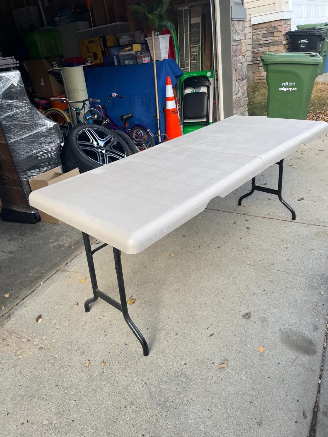 Selling a folding table in great condition! It's perfect for events, gatherings, or just extra table space when you need it. Folds up easily for convenient storage and transport. The legs are black and the table top is a light grey or. Pick up only in Evanston, NW, Calgary. If you see it here, it's still available.