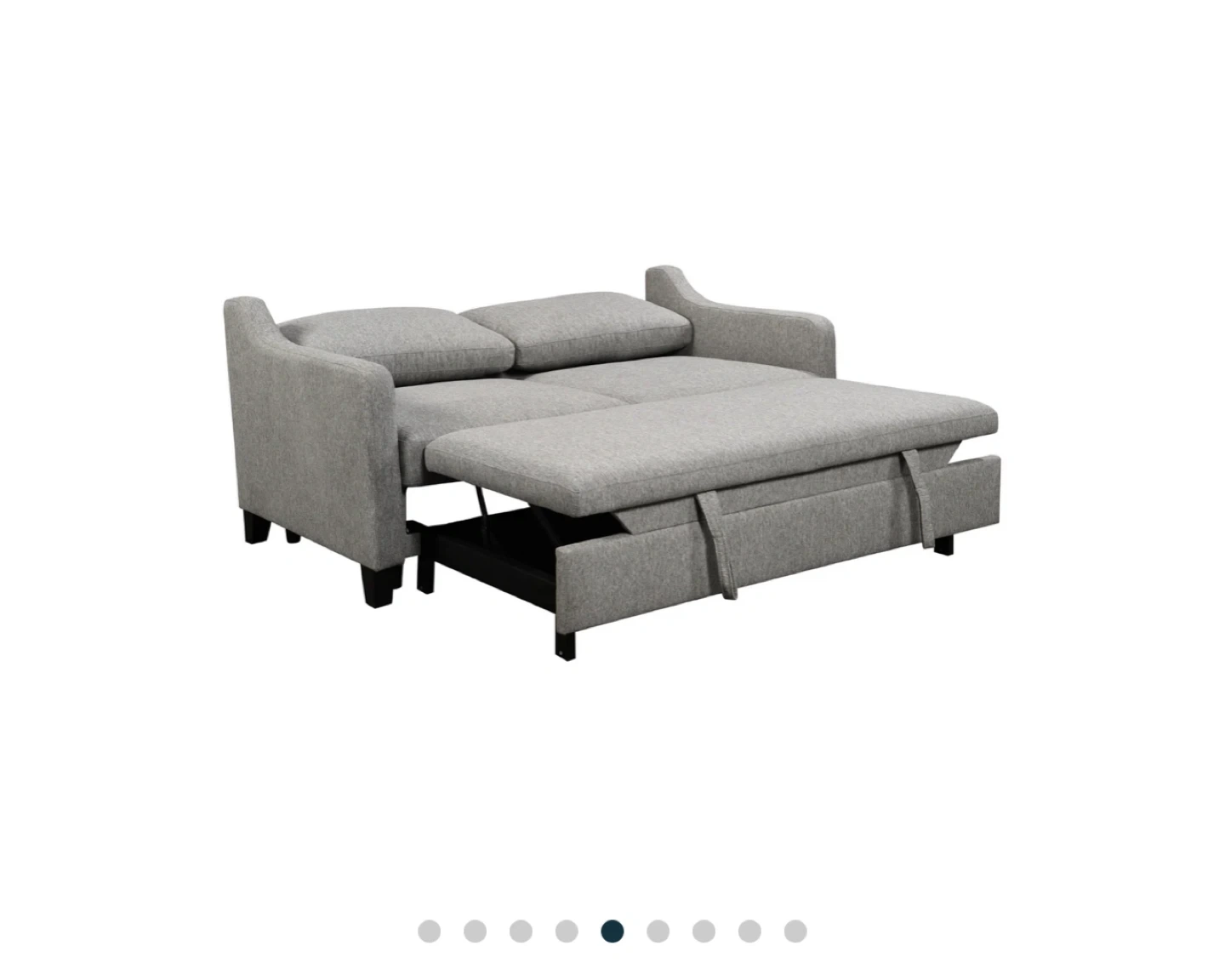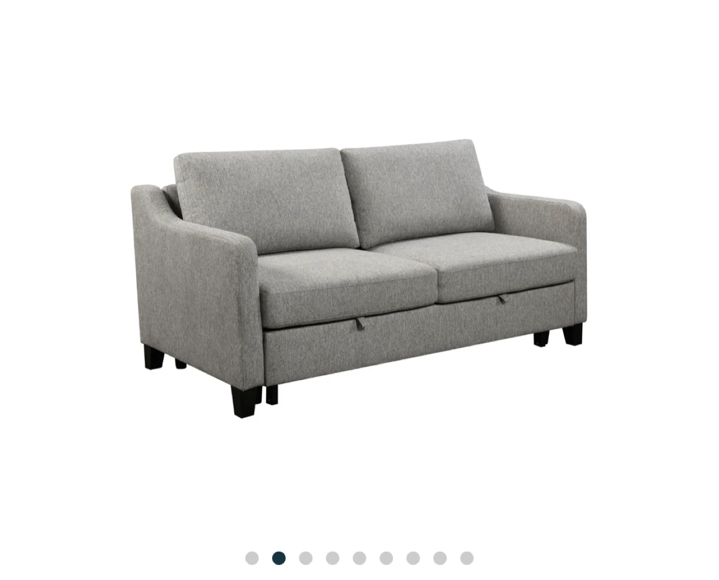 This convertible bed sofa is perfect for small spaces or as an extra bed for guests. It features a dark grey fabric and easily converts from a sofa to a bed. Dimensions are 69.5" L x 37.5" W x 37.25" H. Its brand new in box selling because couldn’t fit in my place.