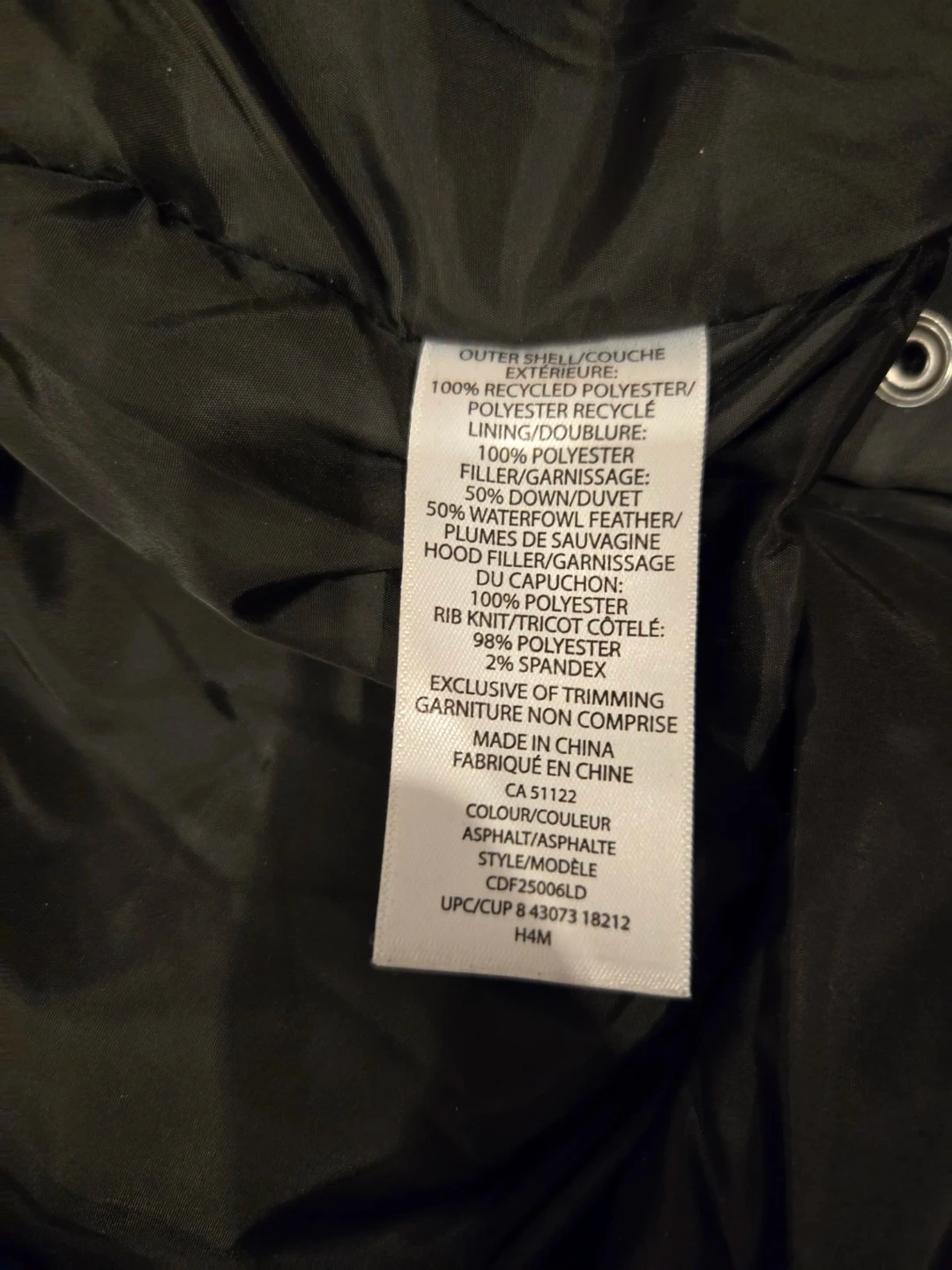 Outer shell is 100% recycled polyester.