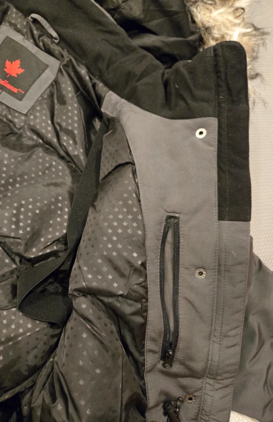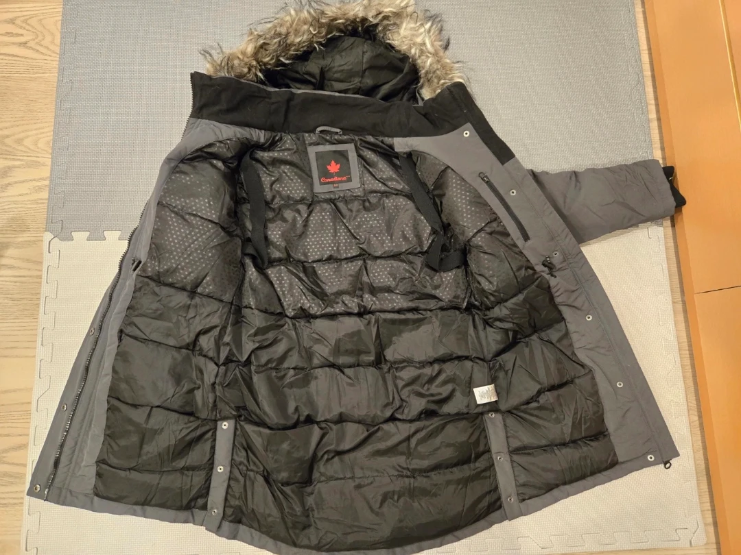 Selling a Canadiana winter parka in asphalt (grey) colour.