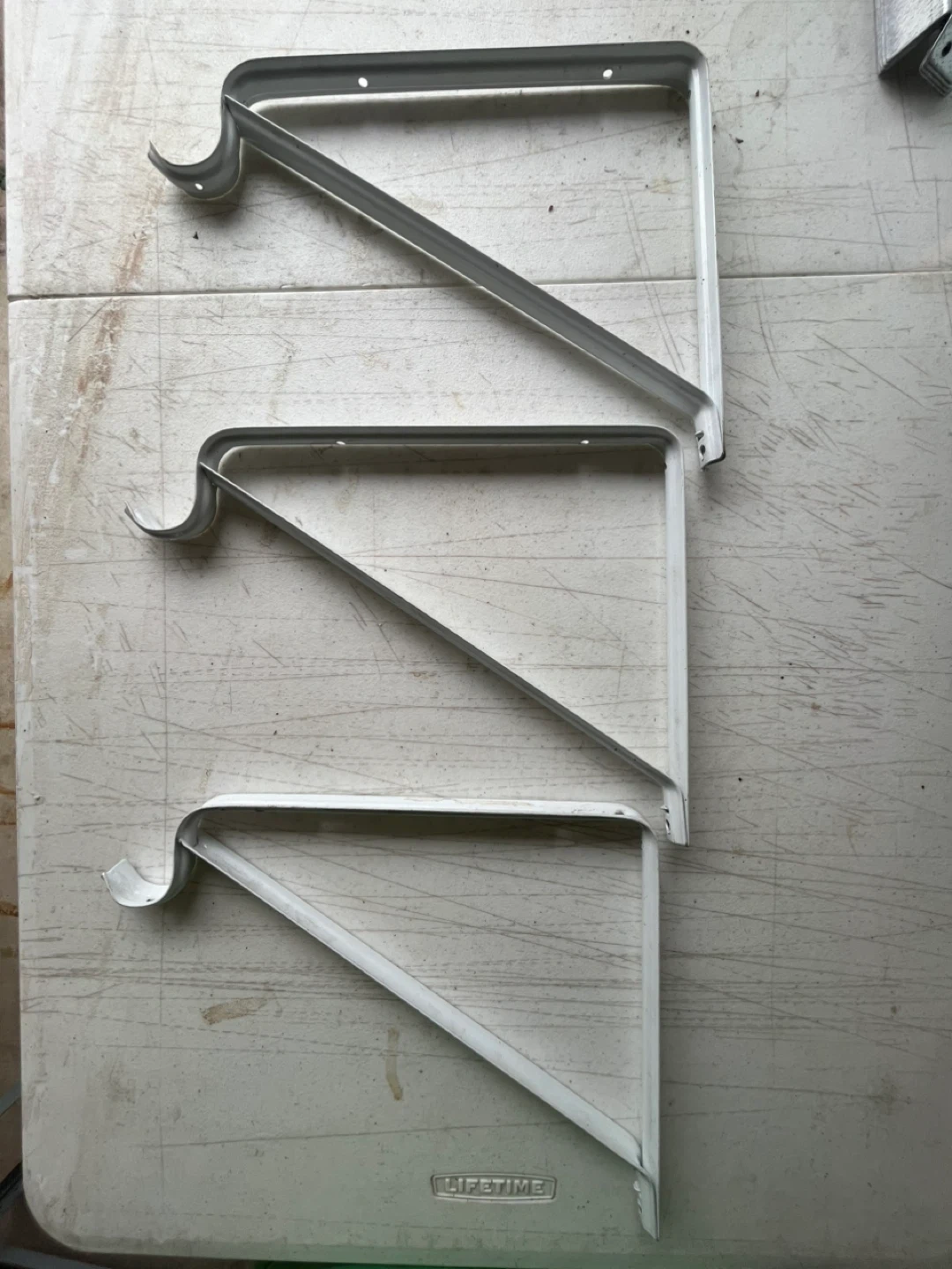 Selling a set of shelf and rod supports with a durable white finish. They're perfect for adding some extra storage to any room. They look to be in great condition!