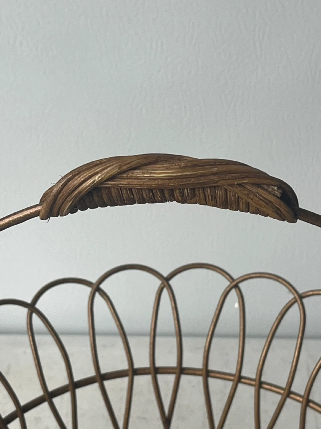 Selling a charming woven metal basket, perfect for adding a touch of rustic elegance to your home decor! The basket features a lovely ribbon detail, enhancing its appeal. It's in great condition and ready to be used for storage, display, or as a decorative piece!