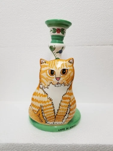 Cats By Nina Lyman Orange/white Tabby Candle Holder features vibrant colours. Unique, perfect gift for cat lovers and collectors. Excellent condition - as new. 10 inches by 5 inches.