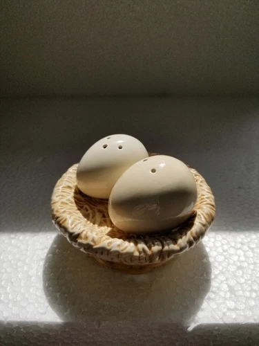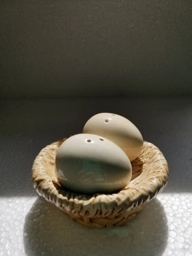 Cute Sakura (China) 2 Eggs in Nest Basket Salt & Pepper