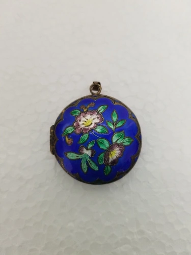 Beautiful Vintage Chinese silver locket enamel handpainted royal