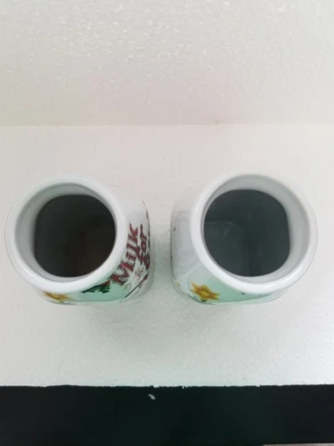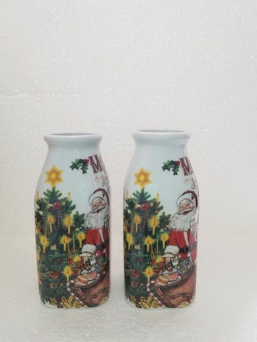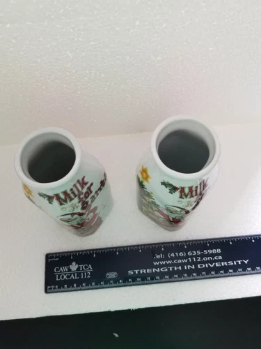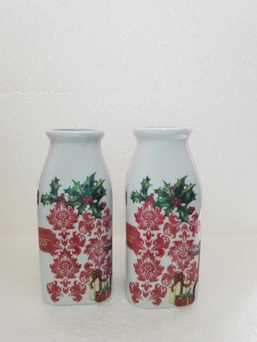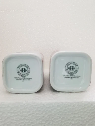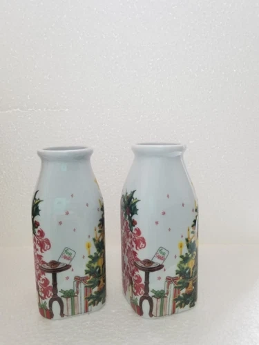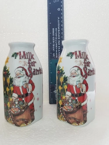 Add a touch of vintage/retro charm to your festive decor with the Fitz & Floyd Olde World Christmas Milk set. Crafted in the United States, each jug stands at 6 inches tall, with a comfortable width and length of 2.5 inches, ensuring they fit perfectly in any space. Barely used, like new.