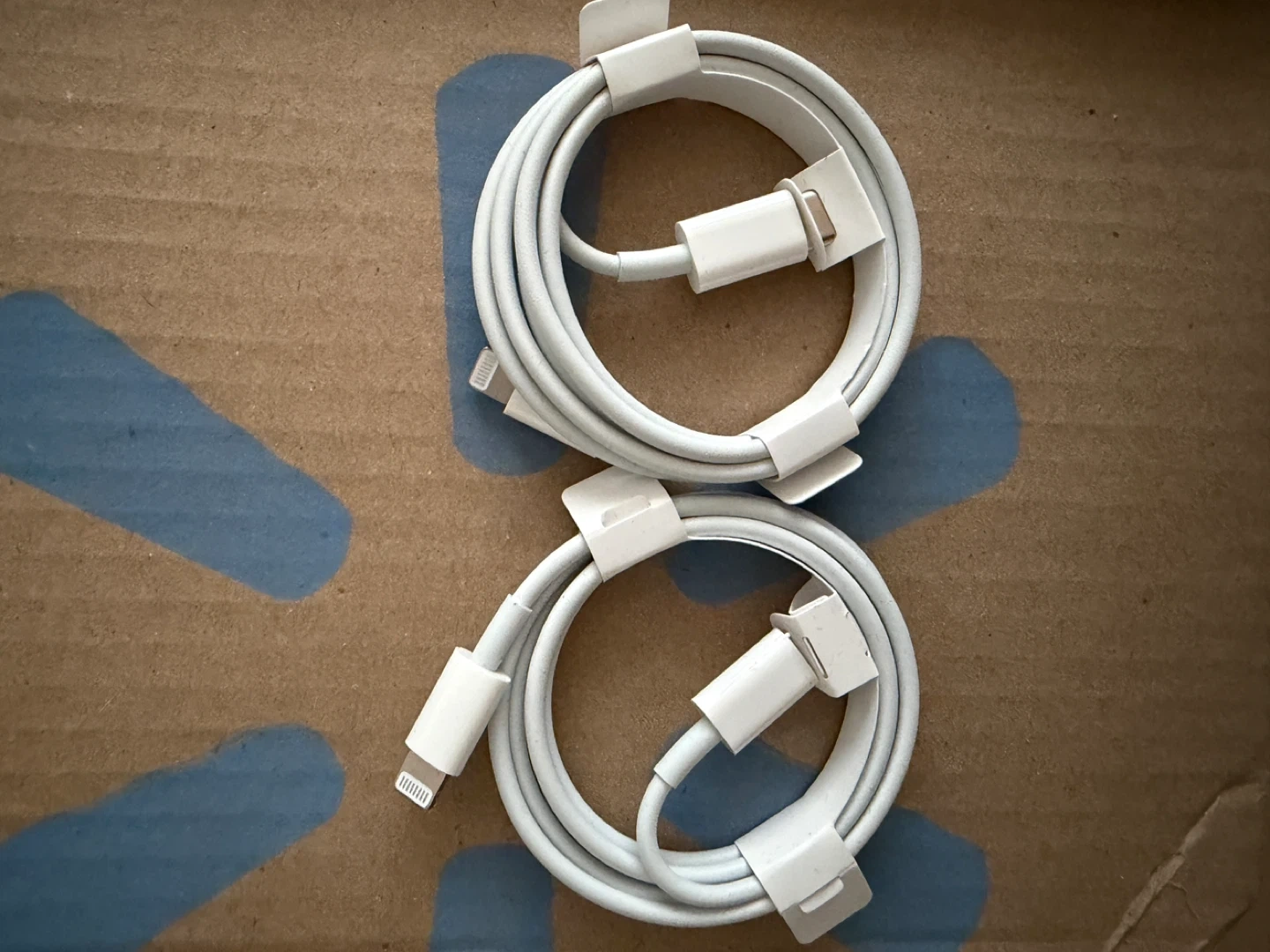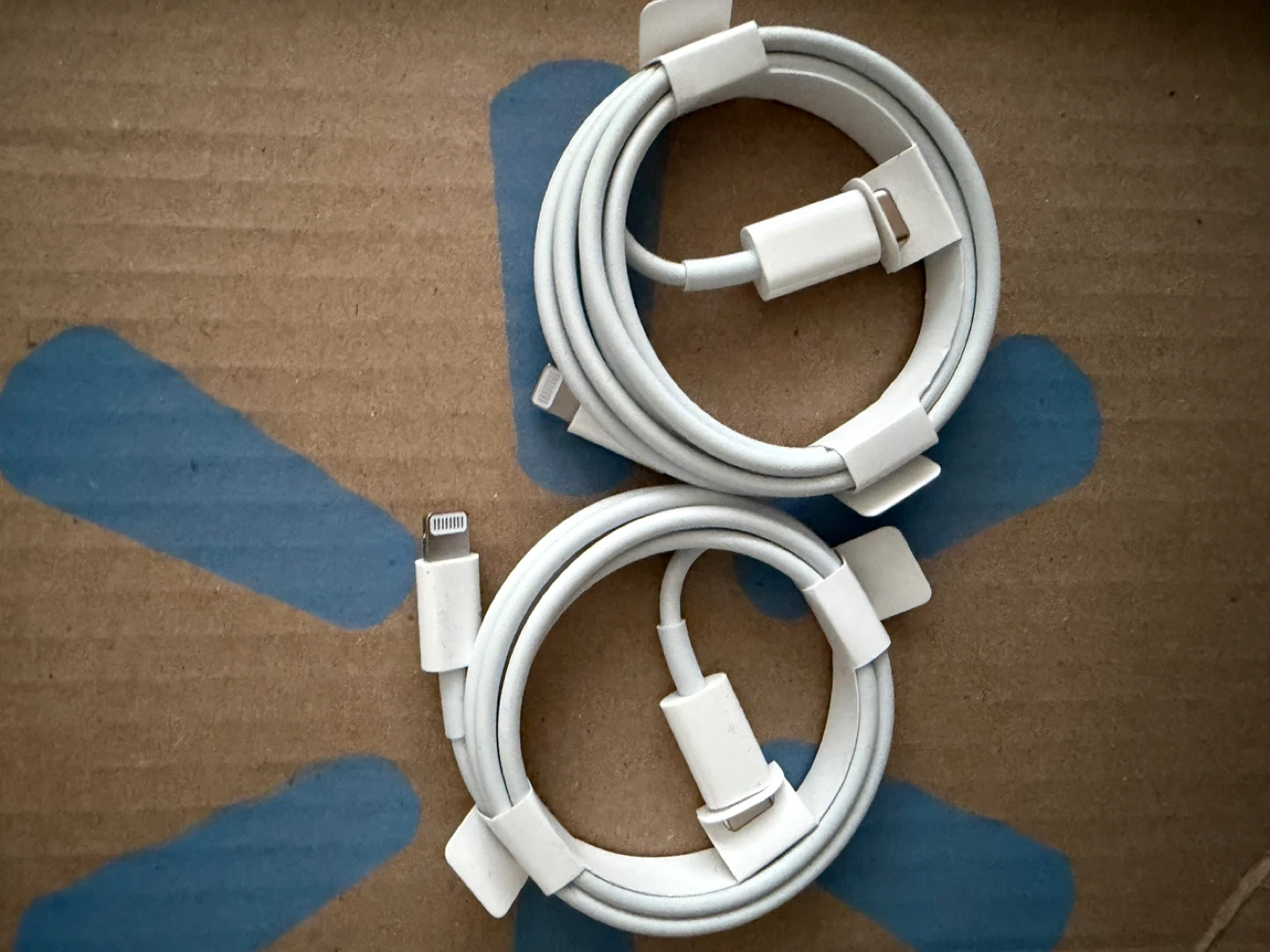 Selling two genuine Apple Lightning to USB cables! These are perfect for charging your iPhone, iPad, or iPod with a Lightning connector. They are white and in excellent condition, ready to keep your devices powered up