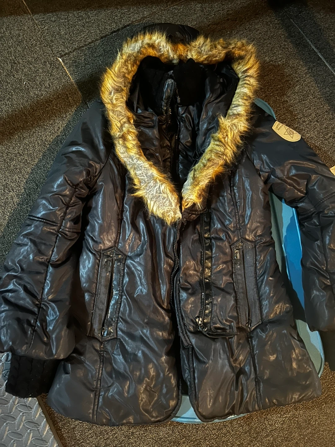 414Selling a stylish black winter parka from Oppenheimer! It features a faux fur trim around the hood and a unique logo patch on the sleeve. Size is M/M. Pick up Mississauga Cash only