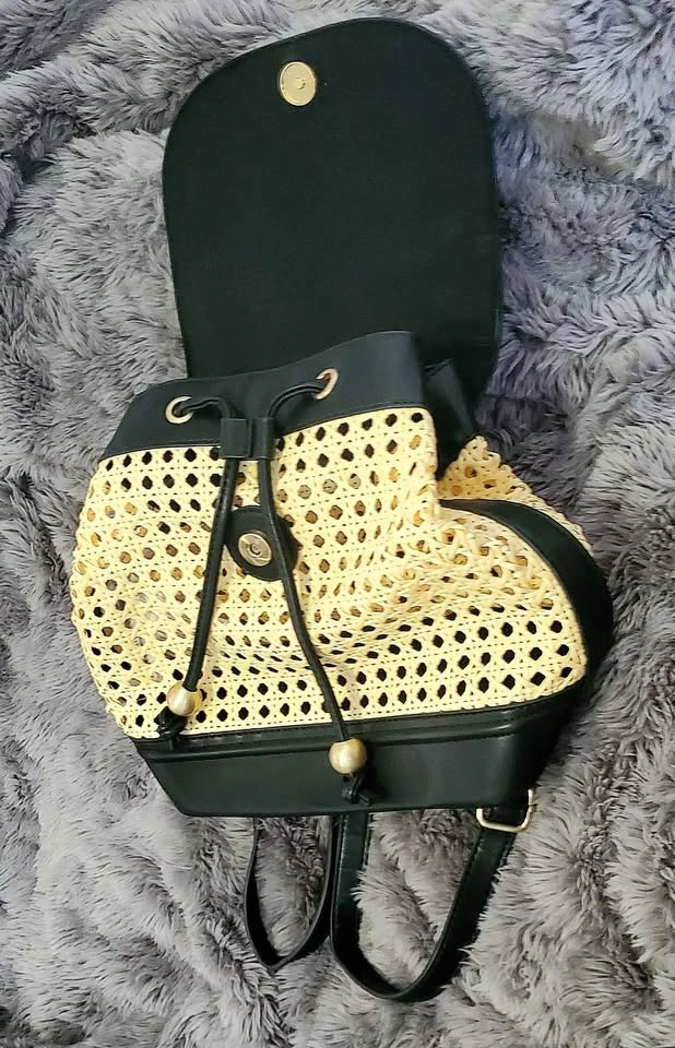 Beautiful and unique backpack from Aldo! Brand new, never worn. If you're looking for a conversation starter, this is it! Magnetic closure with additional pulltab closure adds another layer or security to your belongings. This lightweight basket weave backpack will take you all the way into the summer in style!