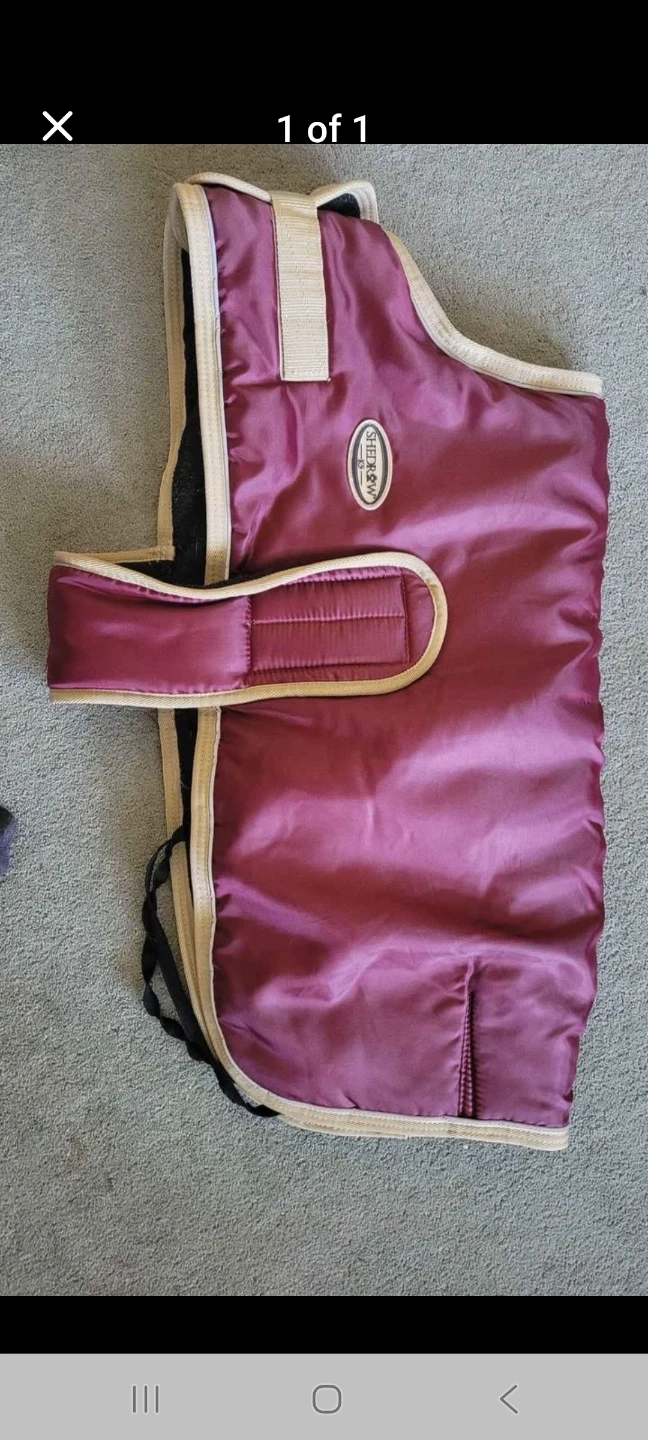 Selling a Shedrow horse blanket in a lovely burgundy colour! It's in great shape and ready to keep your horse warm and cozy.