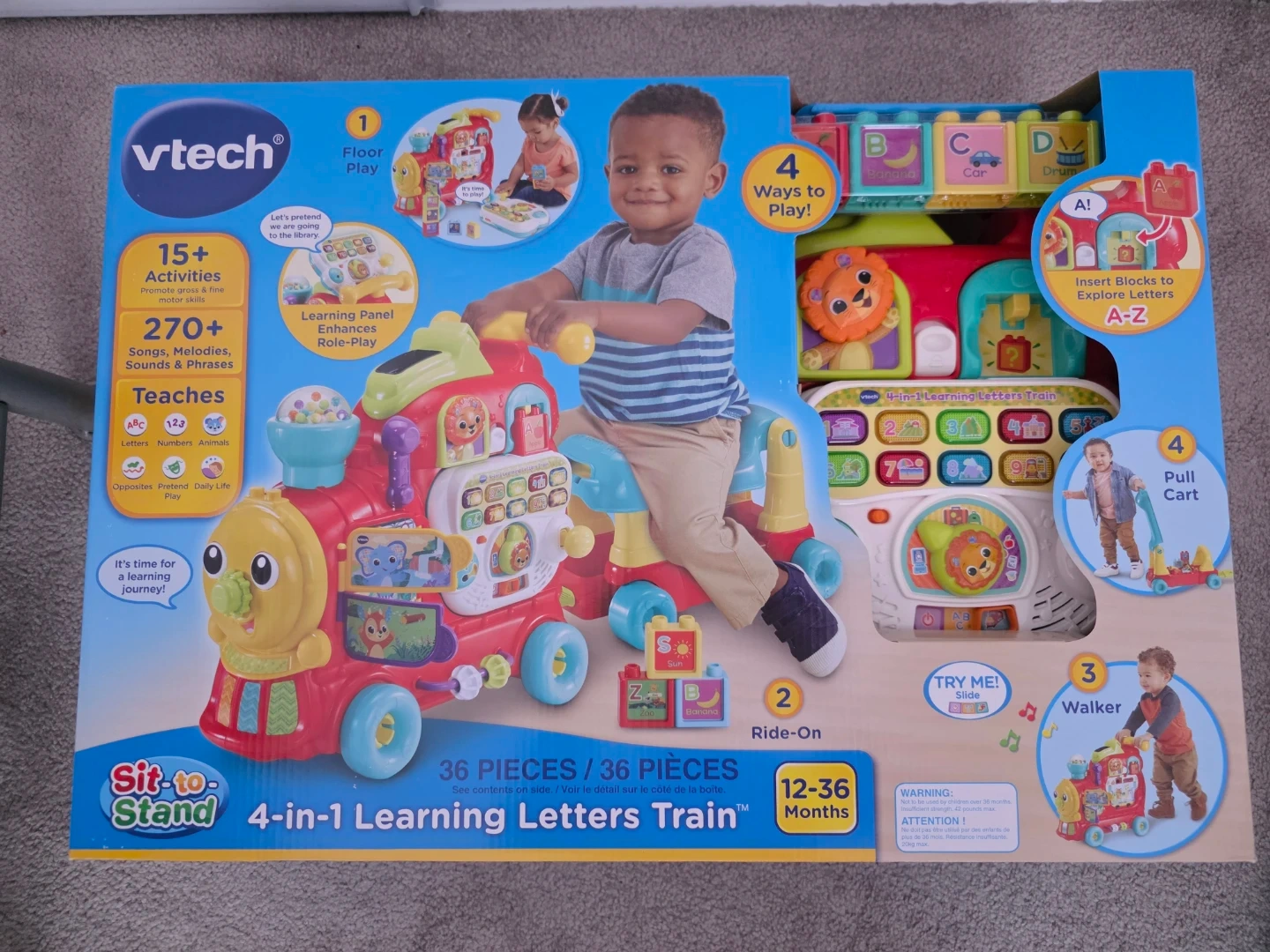 VTech Sit-to-Stand 4-in-1 Learning Letters Train for little ones aged 12-36 months! It features: