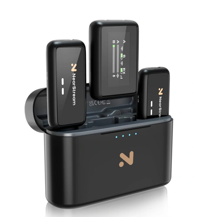 NearStream Wireless Lavalier Microphone for iPhone/Android/DSLR/Camera/PC, Wireless Lapel Microphone System with Noise Cancellation, 656ft Transmission, LCD Display, 20H Battery Life (AWM20T)