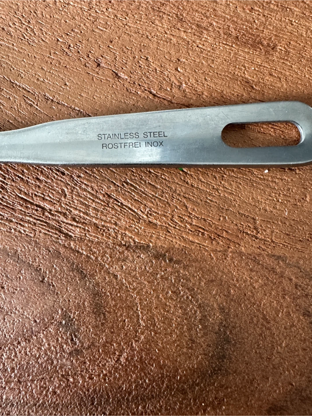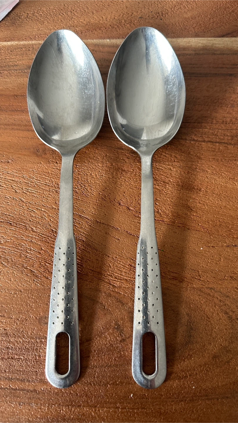 Two stainless steel spoons in great condition! They're marked 'Stainless Steel' and 'Rostfrei Inox', so you know they're good quality