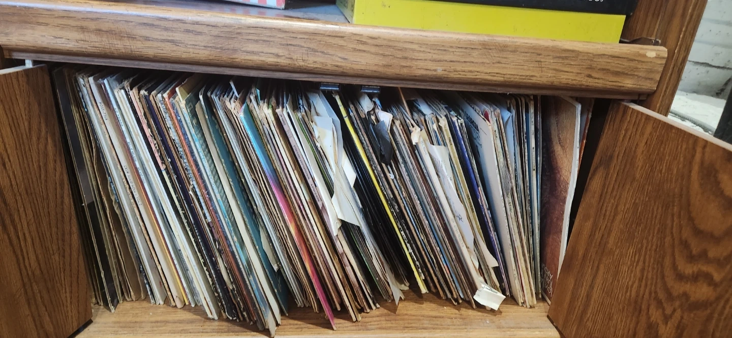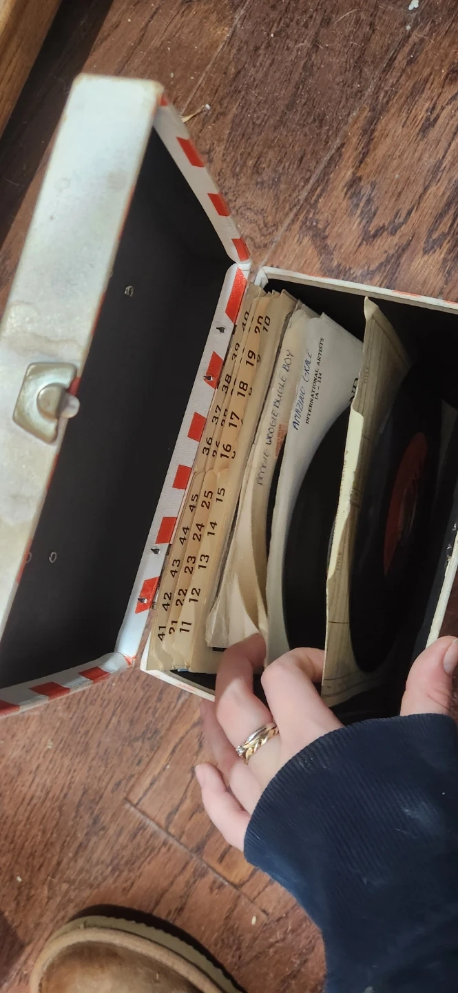 Selling a Ford Mustang record player, along with a collection of vinyl records. The record player has a cool vintage look!