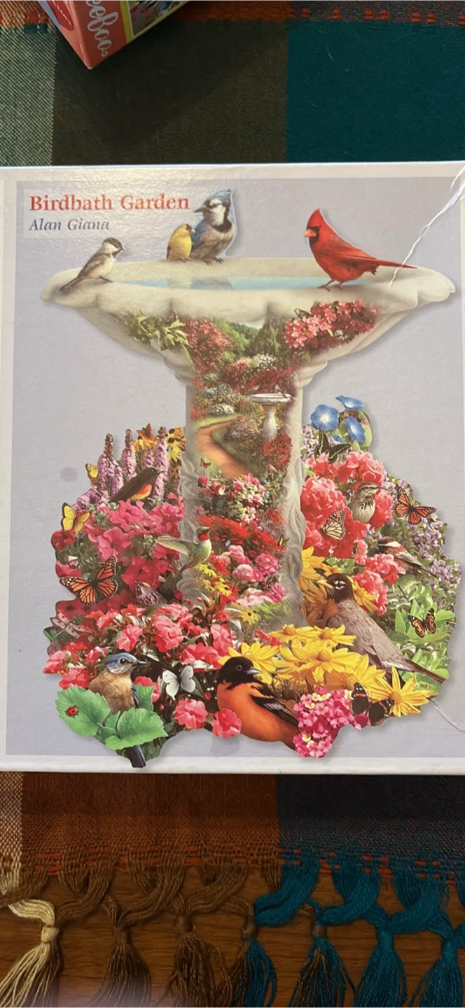 Selling a beautiful 750 piece e puzzle called 'Birdbath Garden' by Alan Giana! Pickup in Charleswood. Open to trades.