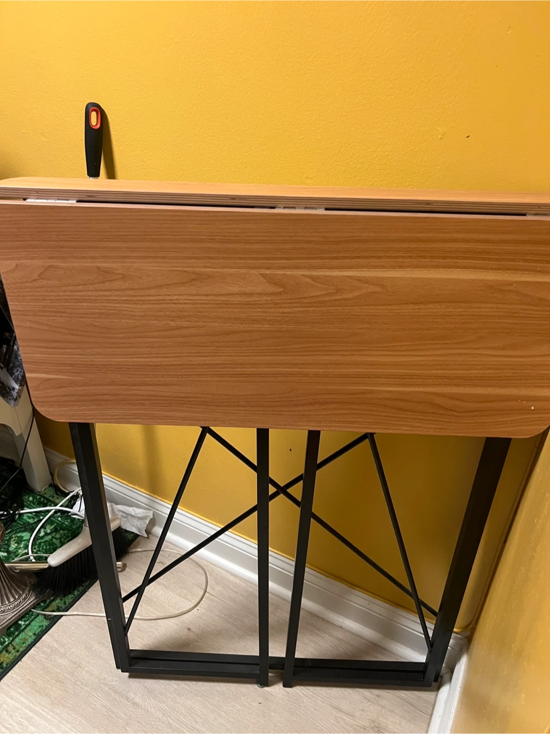I'm selling a bar table with two matching bar stools! They are in excellent condition, practically brand new. The set features a sleek design with black metal frames and warm-toned seats. Perfect for a small dining area or kitchen nook!