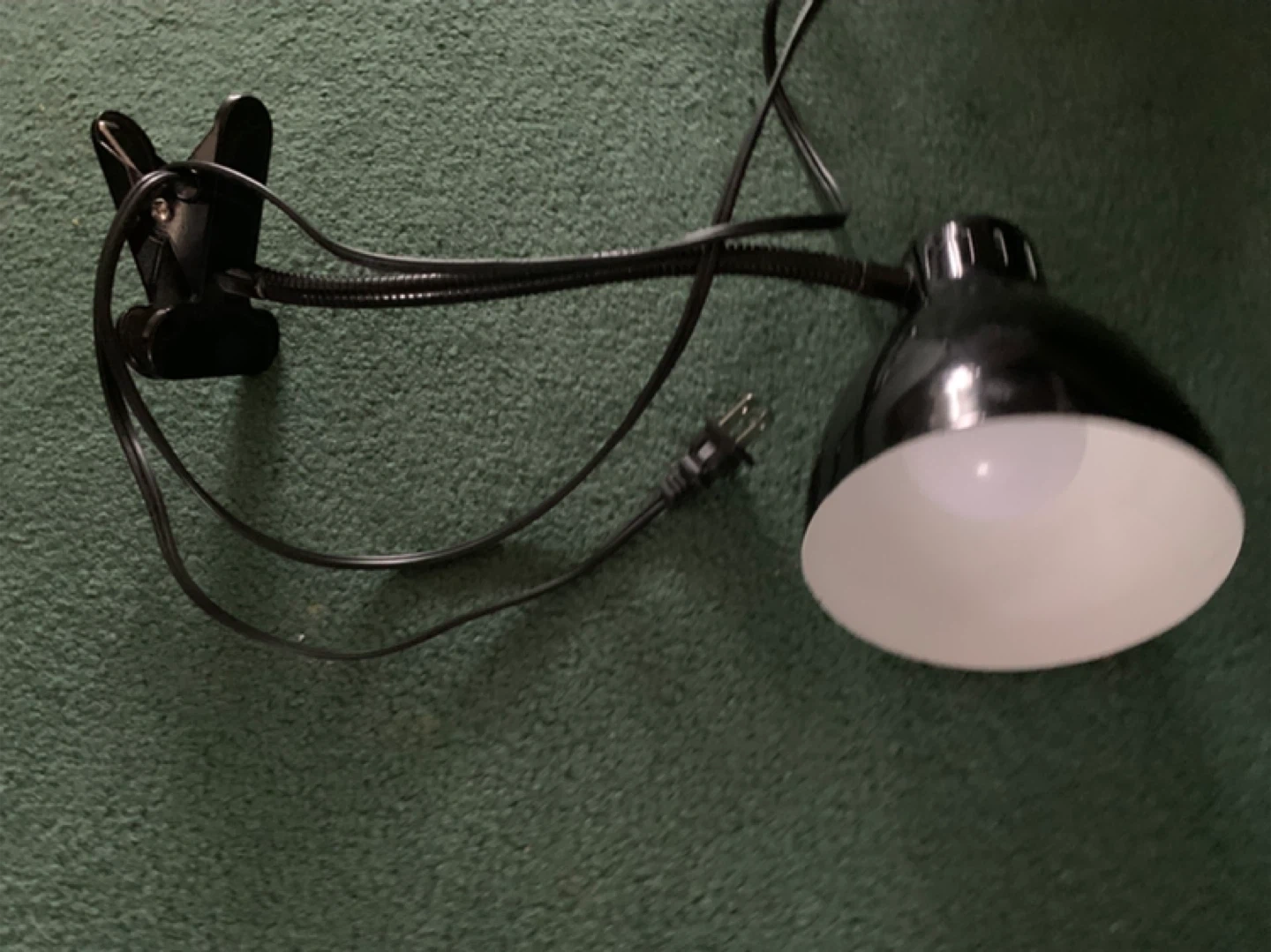 Selling a handy black clip-on desk lamp! It's perfect for a desk, bedside table, or anywhere you need a little extra light. The clip makes it easy to attach to various surfaces.