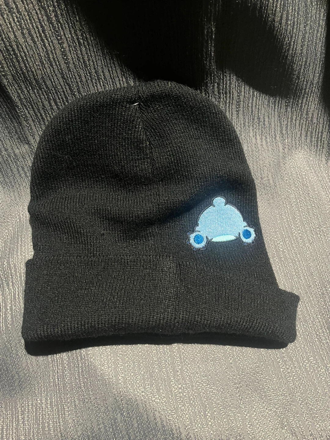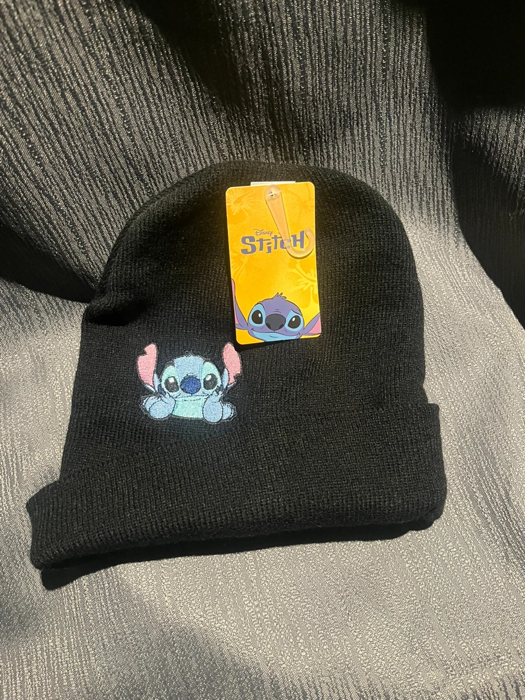 Selling a cute Disney Stitch beanie! It's a black knit beanie with a Stitch design on the front. Perfect for any Disney fan!