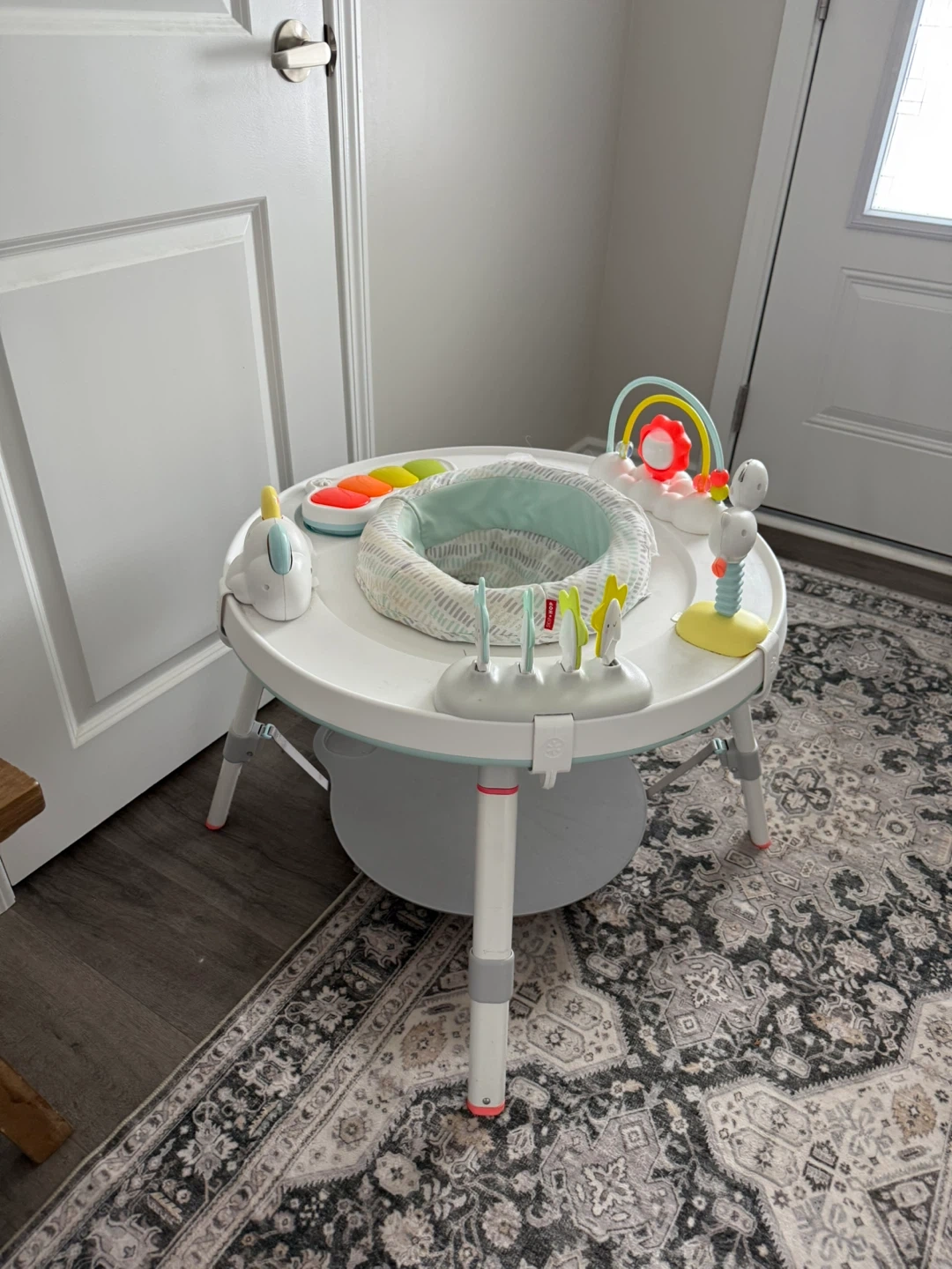 Selling a Skip Hop Explore & More Silver Lining Activity Centre. It's in great condition and ready for a new home! It's designed to support your little one through different stages of development, up to 25 lbs. Perfect for new walkers, it helps teach cause and effect with its discovery window. Pairs well with kid chairs for stage 3! Great condition, everything works, it just needs cleaned as we used it outside. Photos are current.
