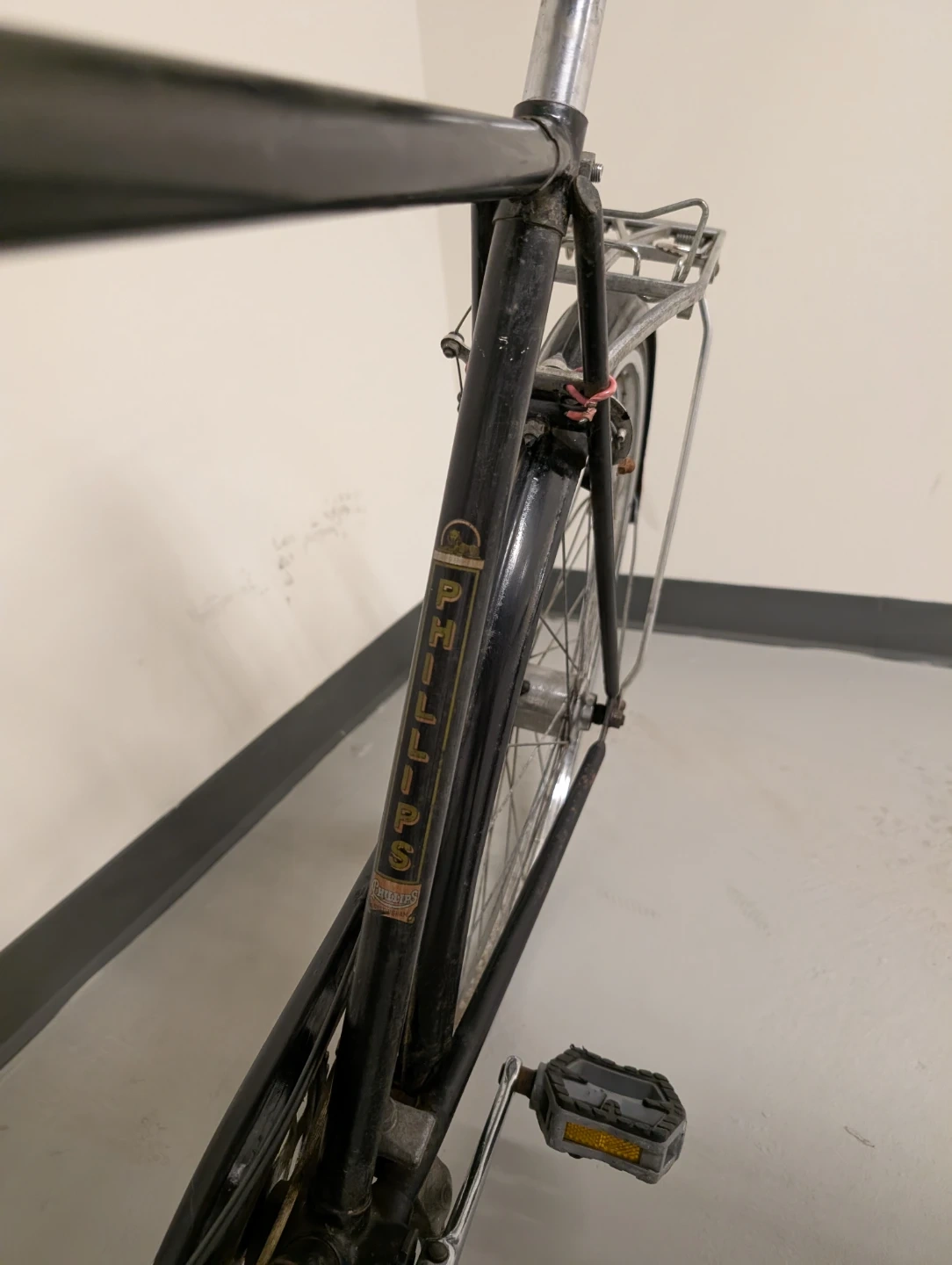 Selling a vintage Phillips bicycle! It features a black frame with silver accents and a comfortable Viscount seat. Perfect for leisurely rides around the neighborhood.