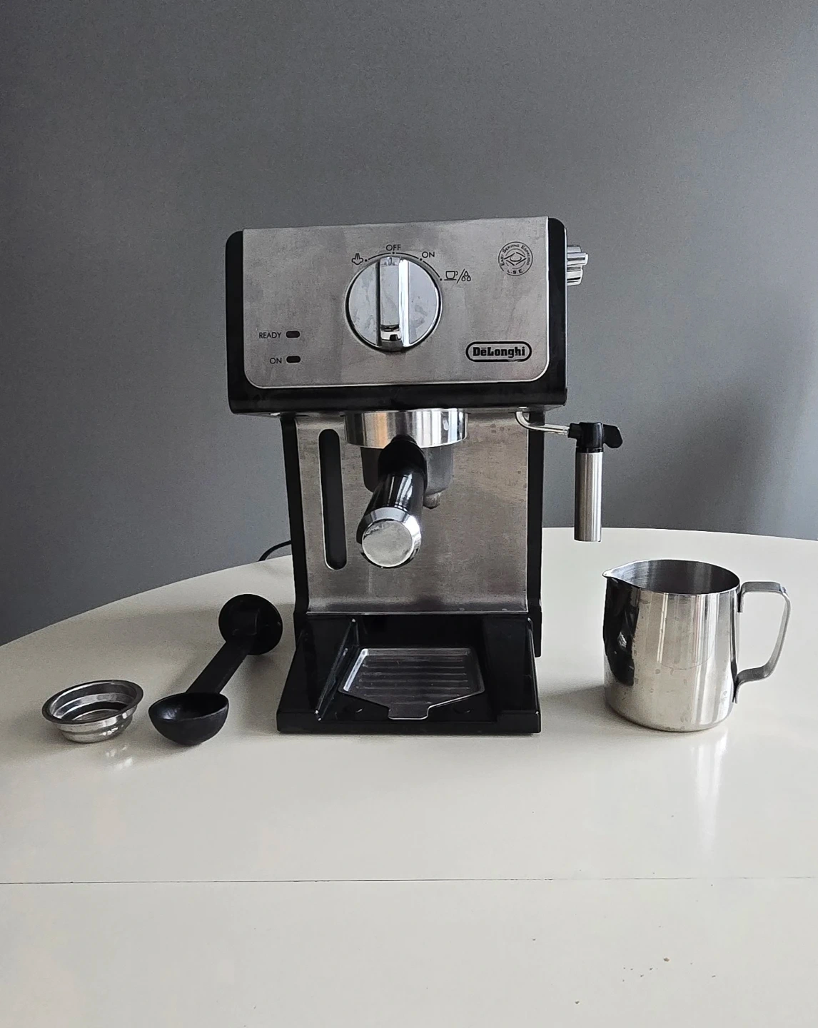 Selling a DeLonghi espresso machine! It's in great shape and ready to make some delicious coffee. Comes with the accessories you see in the picture, including the scoop and milk frothing pitcher