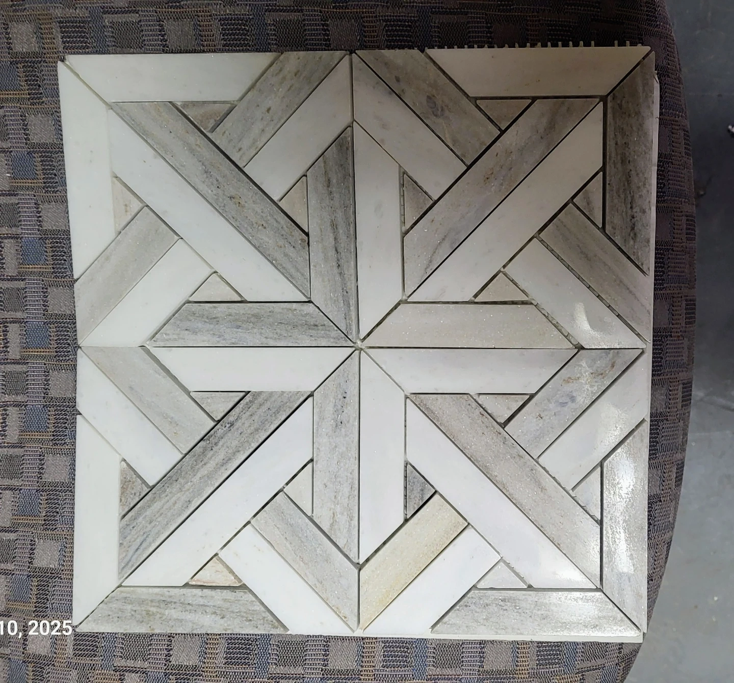 25🥕Selling marble mosaic tiles. They have a beautiful geometric design. Perfect for adding a touch of elegance to any space 45sqft available $5/sqft