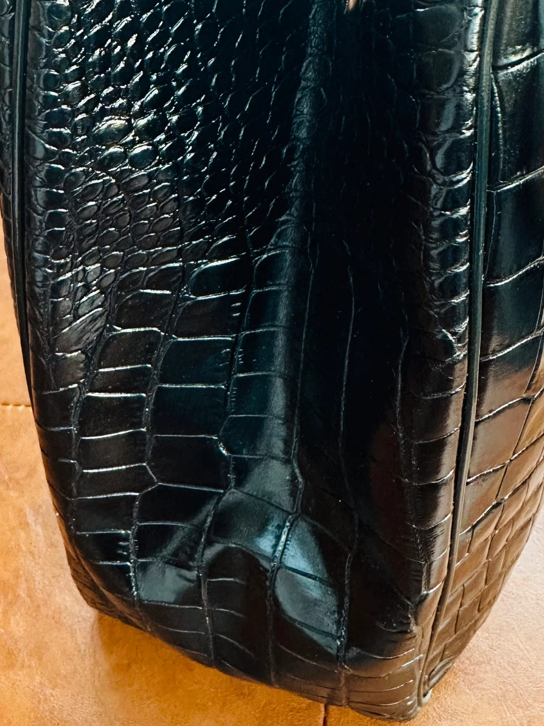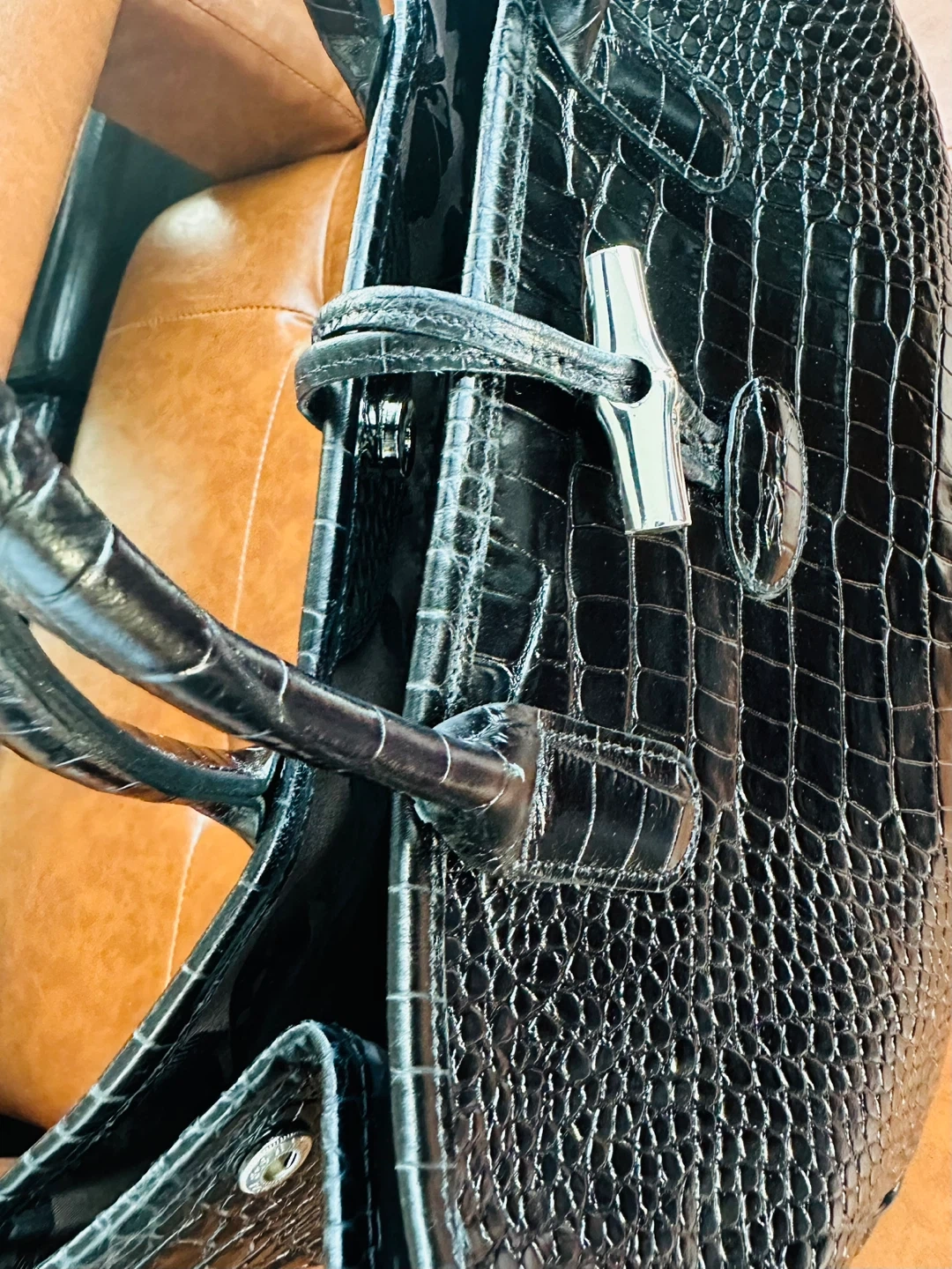 1000+Selling a Longchamp Roseau Croco tote bag in black leather! This tote is in great condition and features a unique crocodile-embossed pattern. It's a stylish and practical bag for everyday use. Large size - $500 Can definitely fit a 14inch laptop