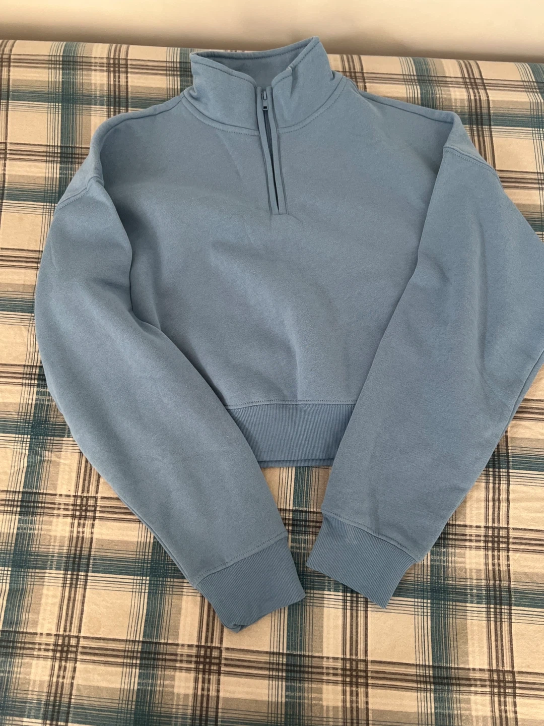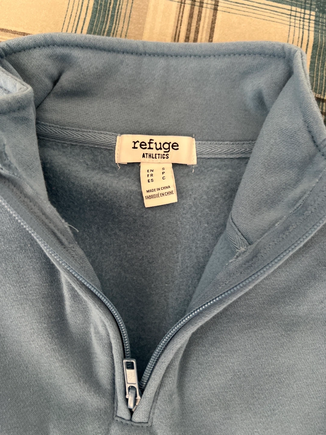 Selling a cute Refuge Athletics 1/4 zip sweatshirt in a lovely blue colour! It's a size small and in great condition. Perfect for layering or just lounging around