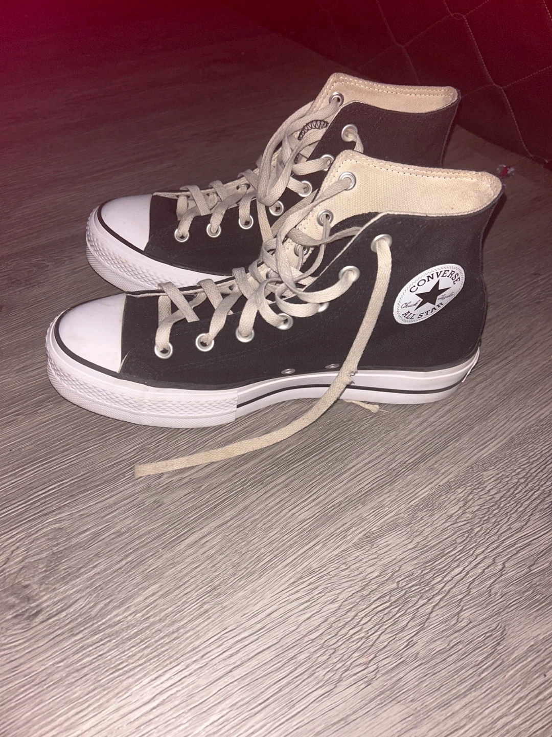 Selling a pair of classic black Converse Chuck Taylor All Star high tops! They're in great condition and ready for a new home. A timeless addition to any wardrobe! FOR WOMEN