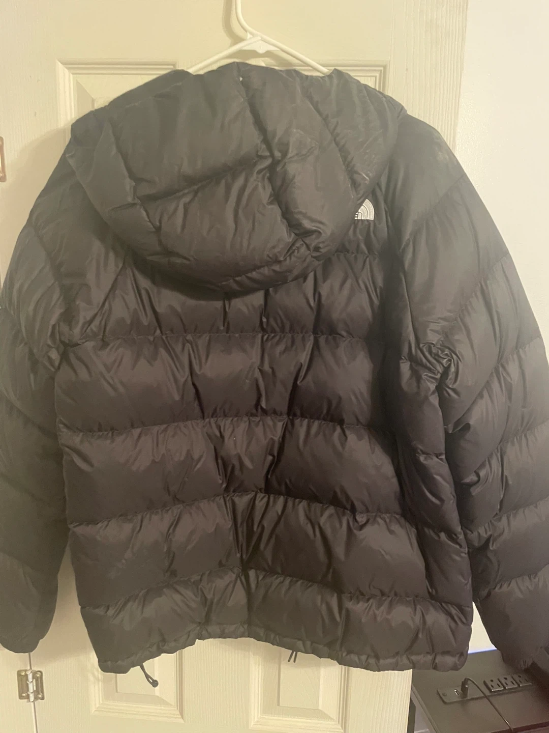 Selling a The North Face puffer jacket in men's size medium. It's black and in great condition! Features the classic The North Face logo and a '600' fill power.
