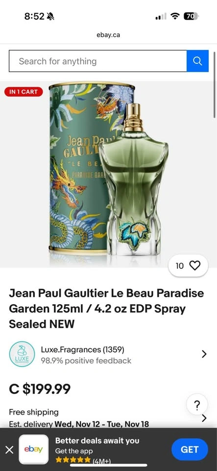 110/125ml bottle of Paradise Garden, great long lasting scent easily 12+ hours!