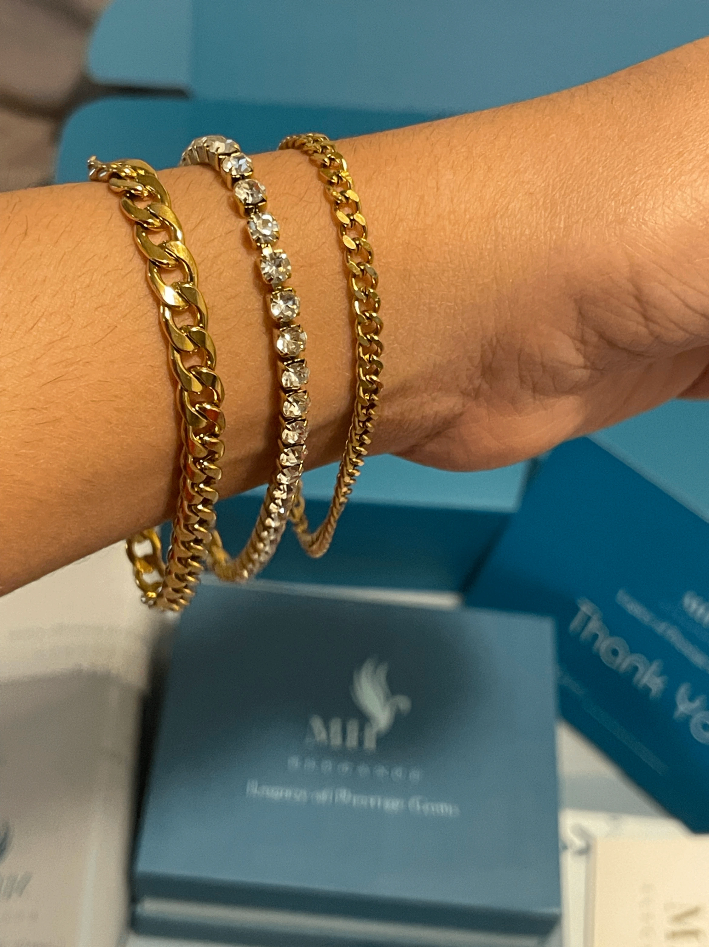 This 3-piece gold charm bracelet set is designed to elevate your everyday style. Featuring three uniquely crafted bracelets—each with its own charm, texture, and character—this set offers endless styling options. Wear them solo for a subtle accent or stack them for a bold layered look.
