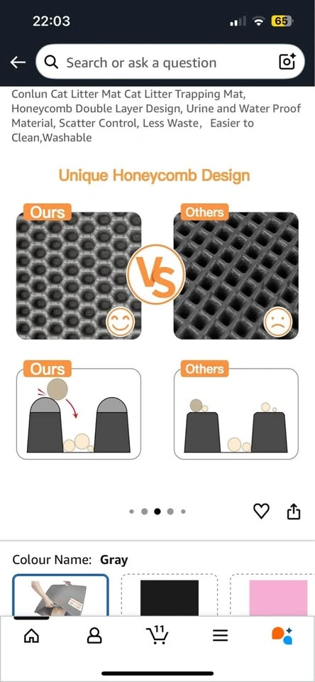 New Conlun Cat Litter Mat Cat Litter Trapping Mat, Honeycomb Double Layer Design, Urine and Water Proof Material, Scatter Control, Less Waste,Easier to Clean, Washable