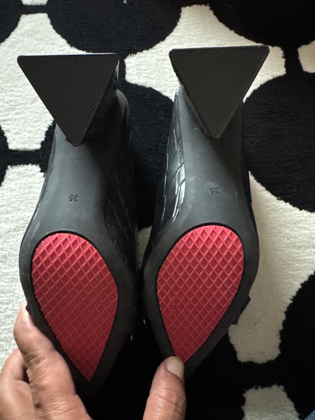 Selling a pair of Ket Importa black heels in size 35. They have a unique, stylish design with a distinctive heel shape. Perfect for adding a touch of elegance to any outfit!