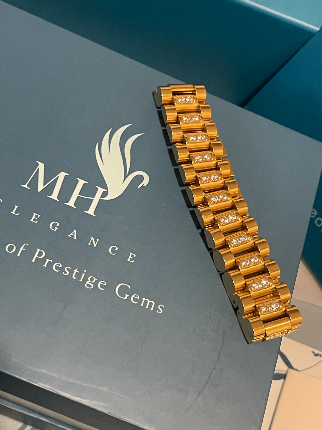 Elevate your look with this Watch Strap Inspired Chain Bracelet, designed to make a statement with its bold and elegant style. Crafted from high-quality 14K Gold Plated materials and accented with sparkling zircon stones, this bracelet adds a touch of sophistication to any outfit. Whether for special occasions or everyday wear, it’s the perfect accessory to enhance your jewelry collection.