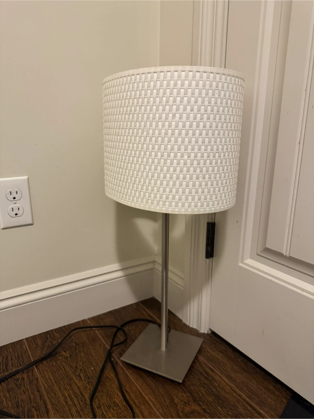 Selling a simple table lamp that would look great in any room! It features a stylish woven shade and a sleek metal base. This lamp is in great condition and provides a nice, soft light. Bought it from IKEA last year.