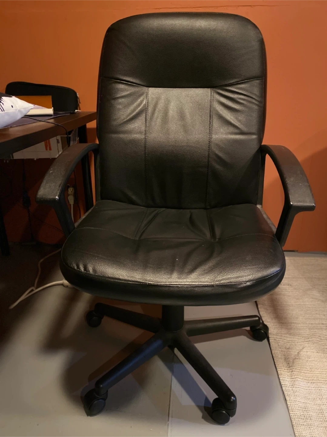 Buy & SellBlack Leather Office Chair Moving sale!Black Leather Office Chair Moving sale!$16Selling a black leather office chair. It's in good condition. Has a minor scratch on the back.ConditionGood0 chats·1 favorites·16 viewsSELLERMoiraOverbrook150 reviewsWHERE TO MEETOverbrook neighborhood
