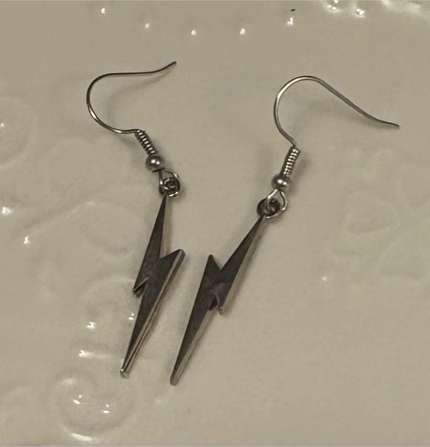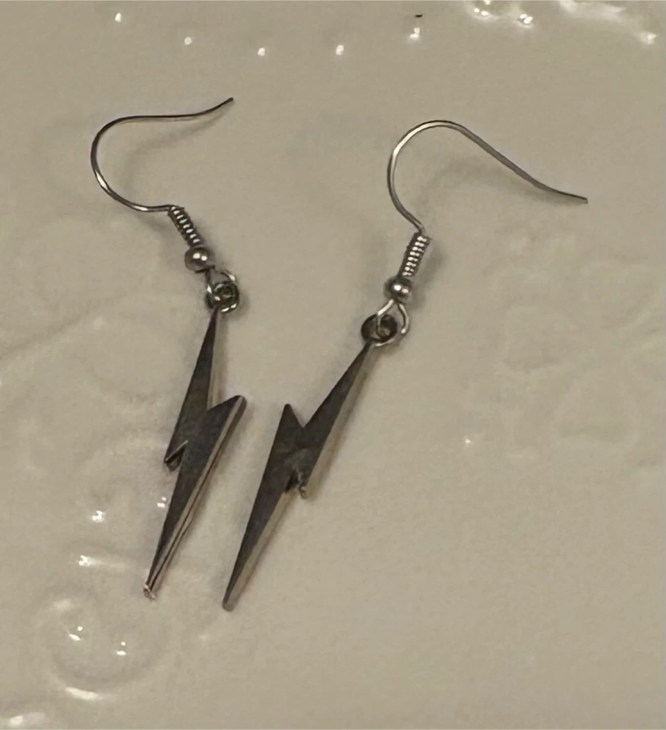 Here's a pair of lightning bolt dangle earrings! They are silver in colour and in great condition. Perfect for adding a little spark to your outfit 🤩
