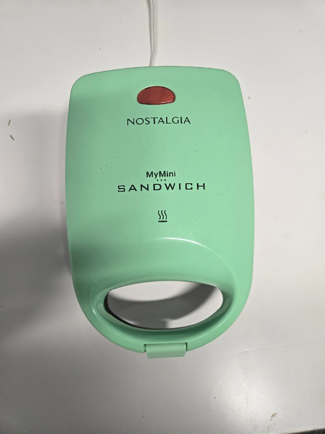Here's a cute Nostalgia MyMini sandwich maker! It's in great shape and ready to make some tasty sandwiches. Perfect for a quick and easy meal or snack. It's compact and easy to store too!