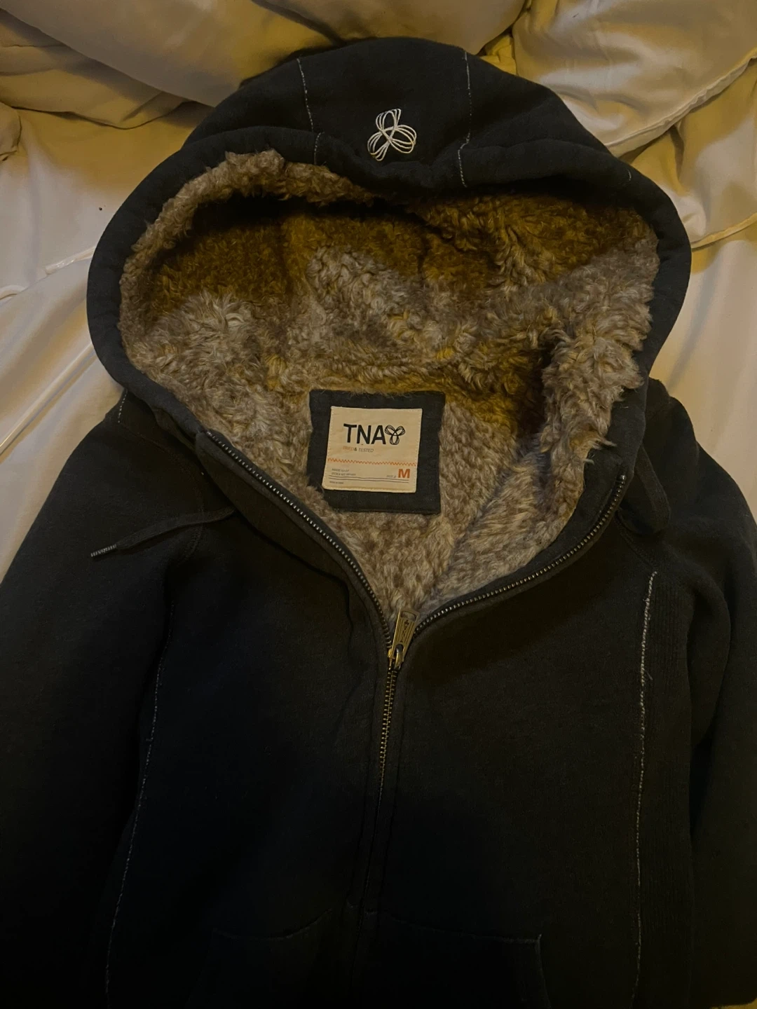Buy & Sellvintage Y2K TNA Black Fleece Lined Hoodie - Size Mvintage Y2K TNA Black Fleece Lined Hoodie - Size M$45Willing to lower price Cozy up in this TNA black hoodie! It's a size medium and fully lined with soft fleece. Perfect for staying warm on chilly days!ConditionLike newSizeMBrandTNA0 chats·4 favorites·29 viewsSELLERMariAcademy Place150 reviewsWHERE TO MEETM9P 2R7