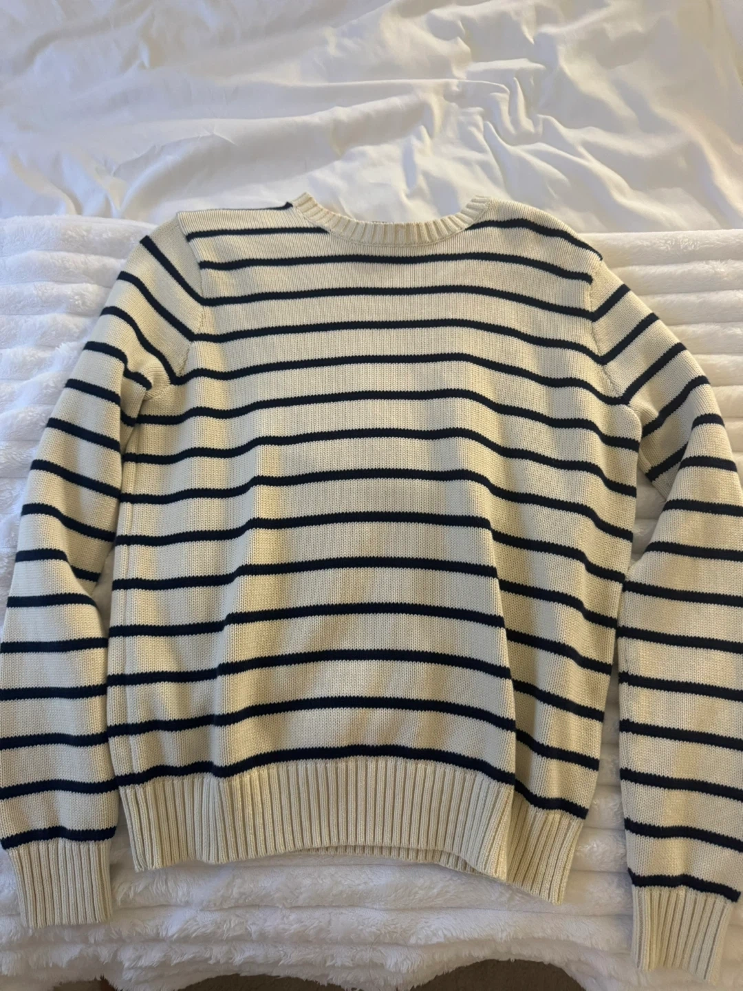 Selling a cute Brandy Melville sweater with a striped pattern! It's in perfect condition and perfect for layering or wearing on its own. A classic piece to add to your wardrobe!