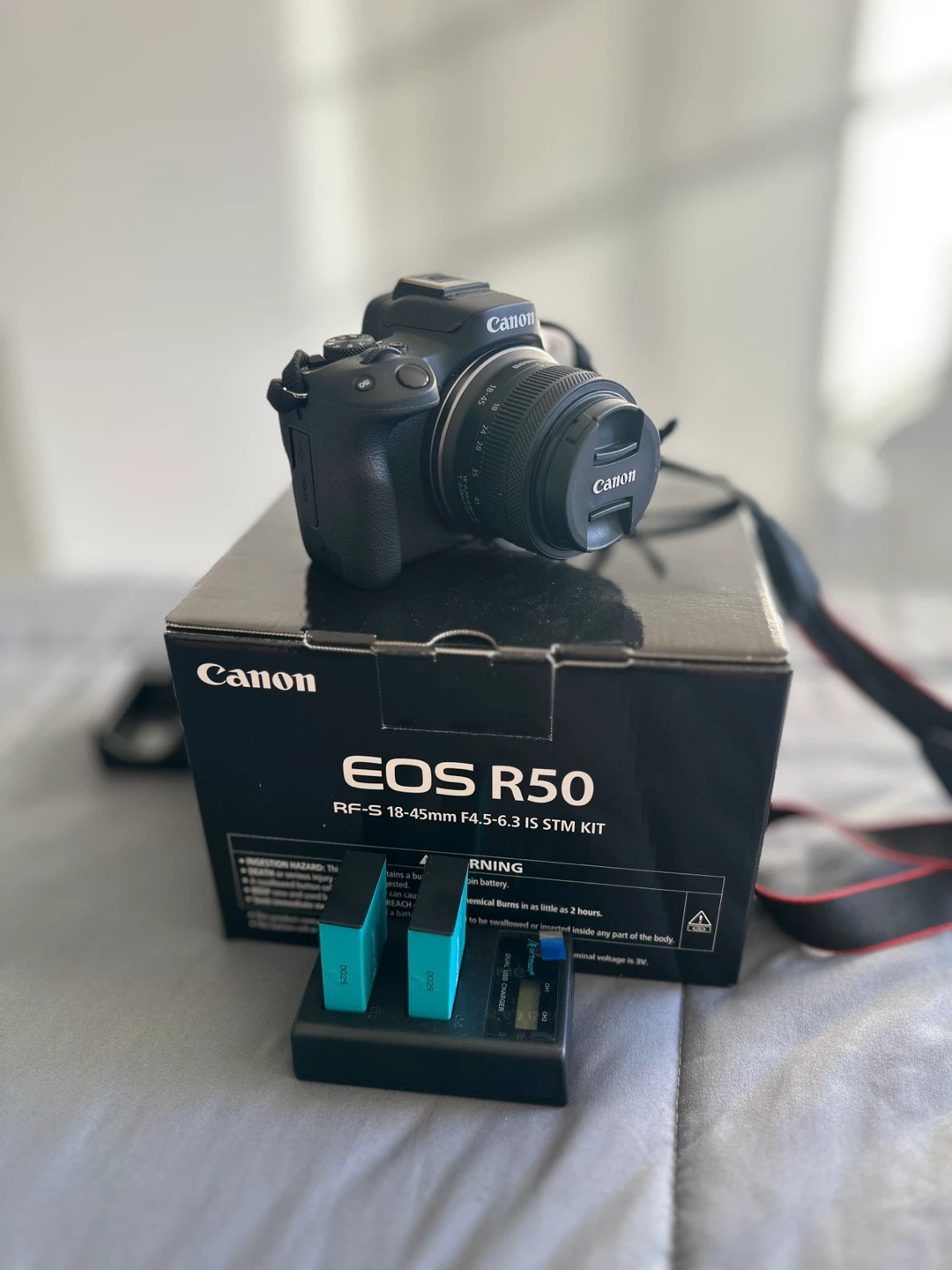1 / 41 / 4Buy & SellCanon Eos R50Canon Eos R50$648Mirrorless camera Come with two extra batteries and a dummy battery. Only used for one vacation.WHERE TO MEETCheck LocationView MapSELLERverifiedCjWhalley792 reviews5 chats·1 favorites·103 viewsSEND CHAT TO SELLERHi Cj! I’m interested in your listing.Hi Cj! I’m interested in your listing.Get the Karrot app to chatSign In to chat
