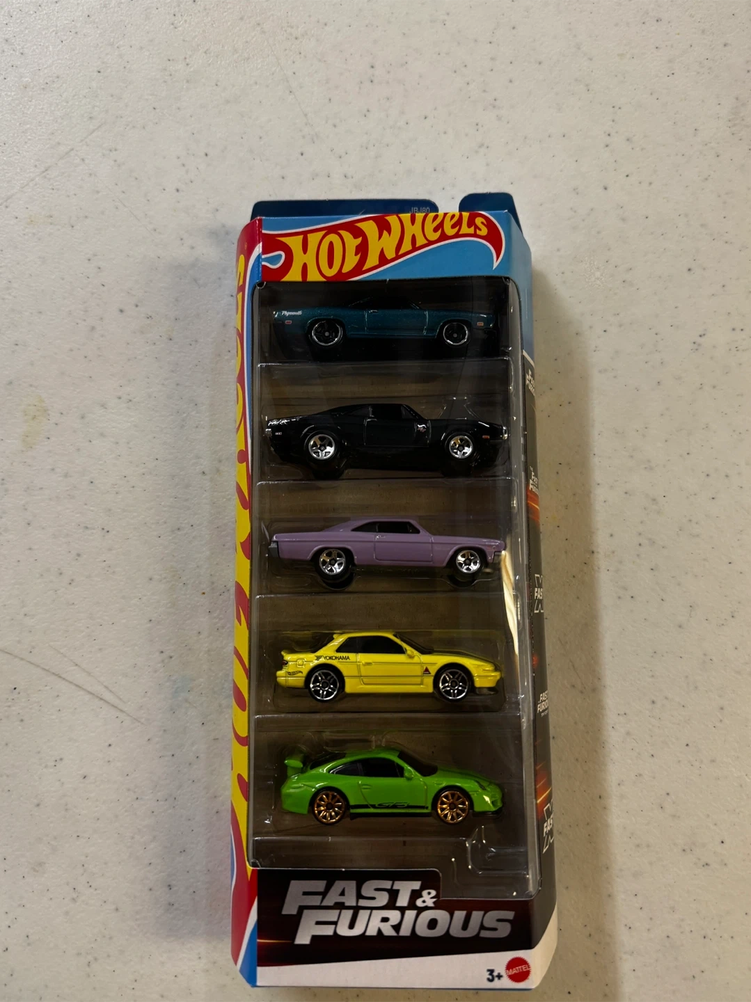 Selling a Hot Wheels Fast & Furious 5-pack! This set includes miniature versions of iconic cars from the film series, perfect for collectors or fans of the franchise