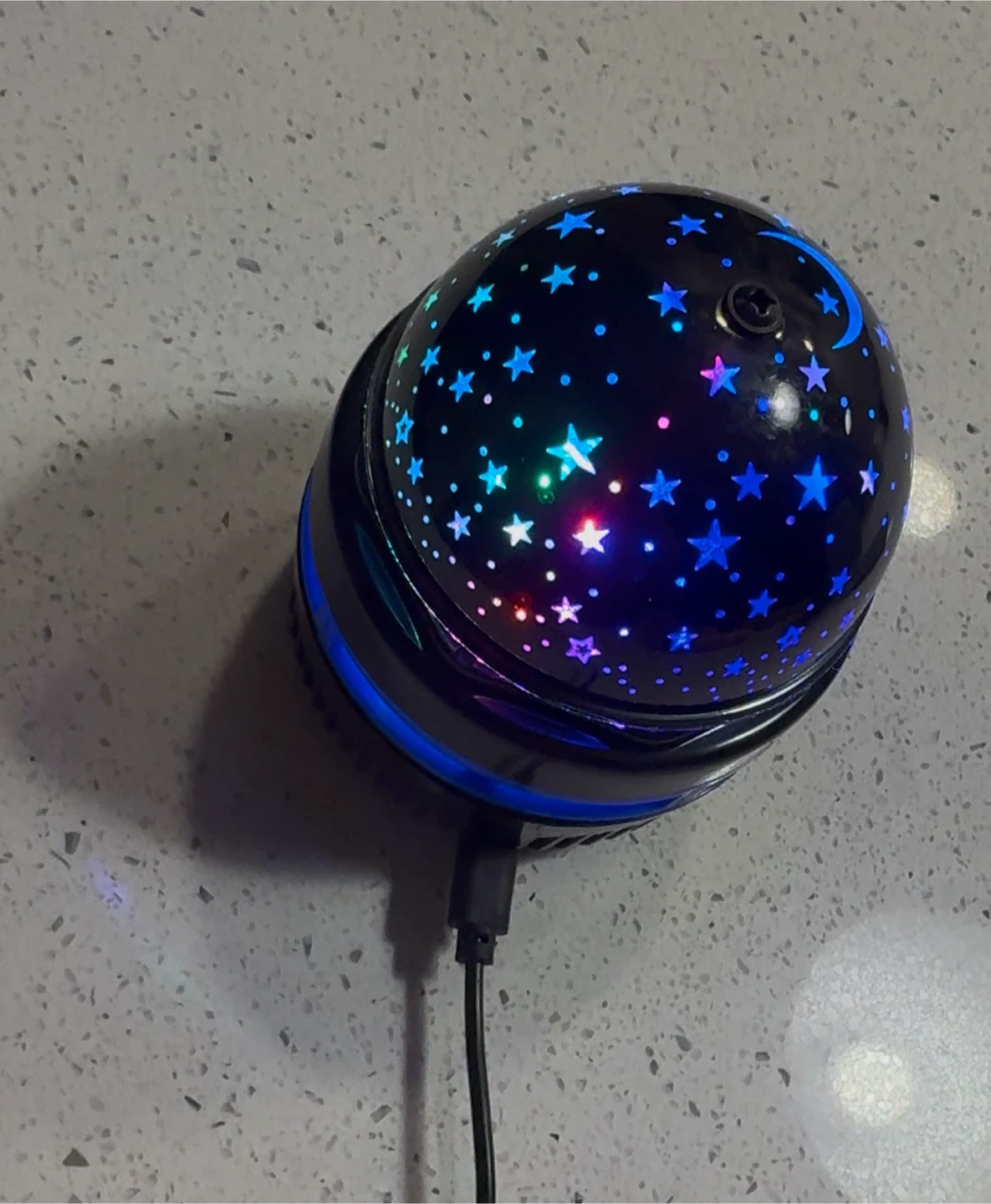 I'm selling a fun LED mini magic ball projector! It's in great shape and projects colourful stars and moons onto the ceiling. It comes with its original box and a USB cable for power. It's perfect for adding a bit of whimsy to any room