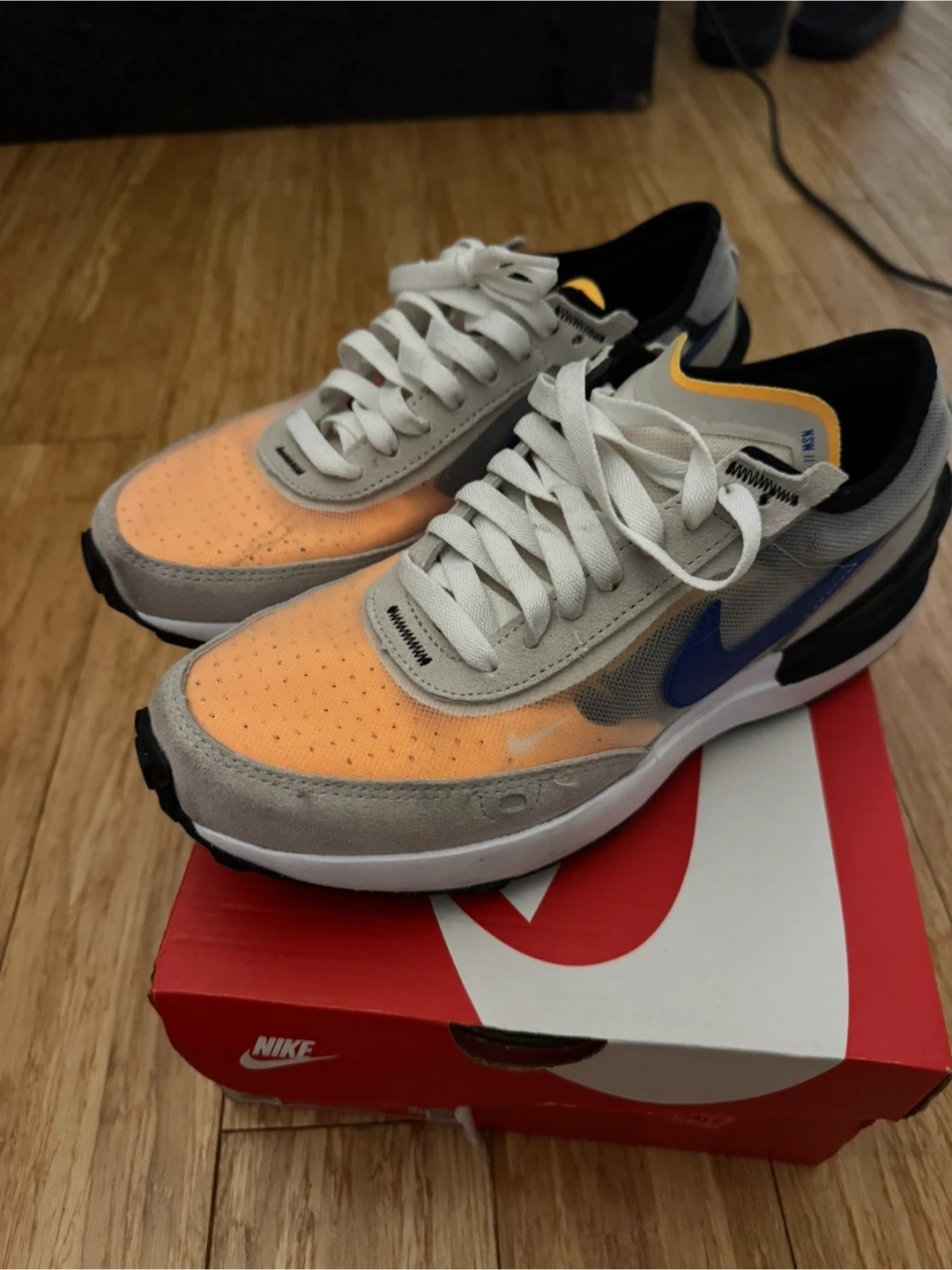 Selling a pair of Nike Waffle One men's shoes. These shoes feature a unique waffle pattern on the sole, offering a blend of classic Nike style and modern innovation. The upper is made with a mix of transparent mesh and suede, providing breathability and a premium look. Great for everyday wear!