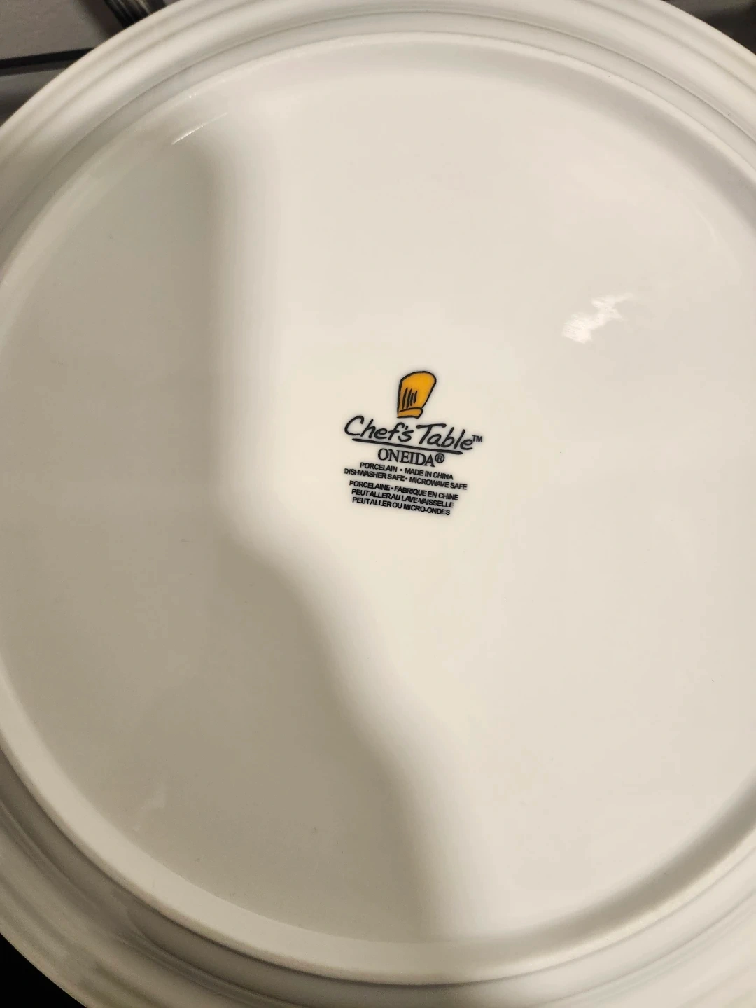 Selling a set of 3 Chef's Table porcelain dinner plates by Oneida. They are made in China and are dishwasher and microwave safe. Perfect for everyday use or special occasions!